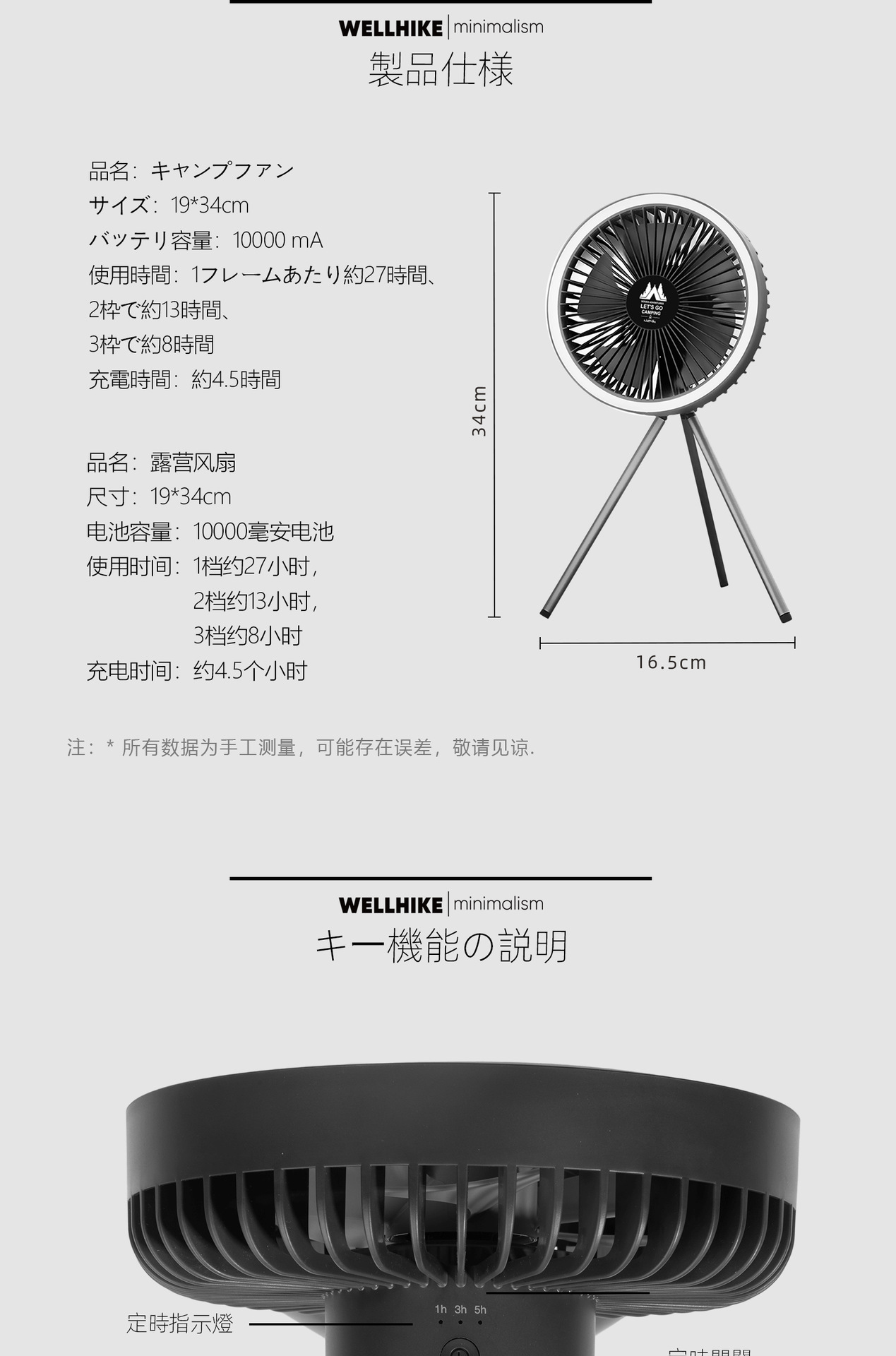 WELLHIKE 야외 캠핑 팬 가정용 선풍기 휴대용 소형 팬 usb 충전식 캠핑 천장 팬 라이트