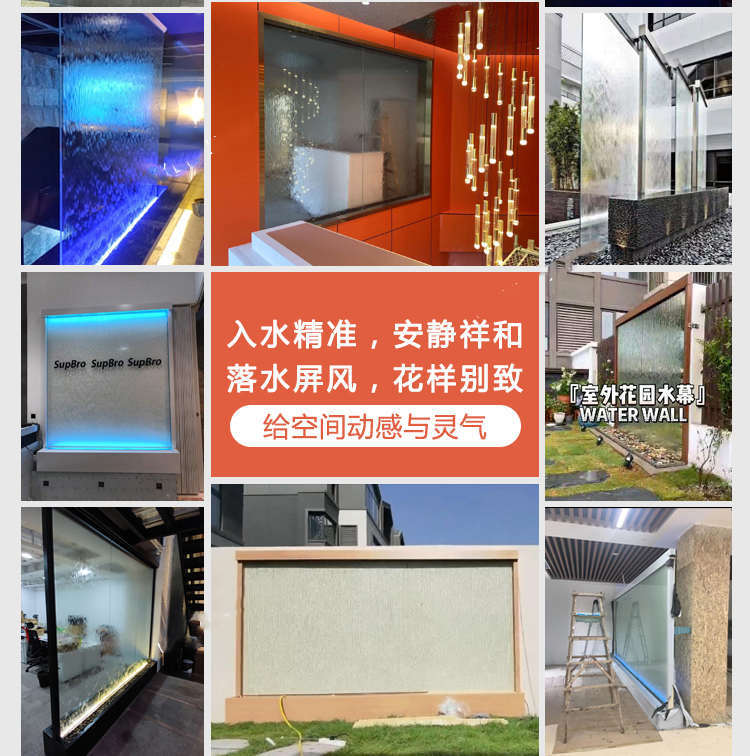 유리 워터 월 입구 파티션 워터 스크린 분수 조명 실내 입구 안뜰 장식 조경 워터 커튼 스크린스토어 가기