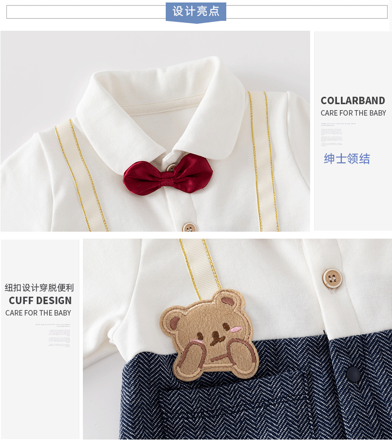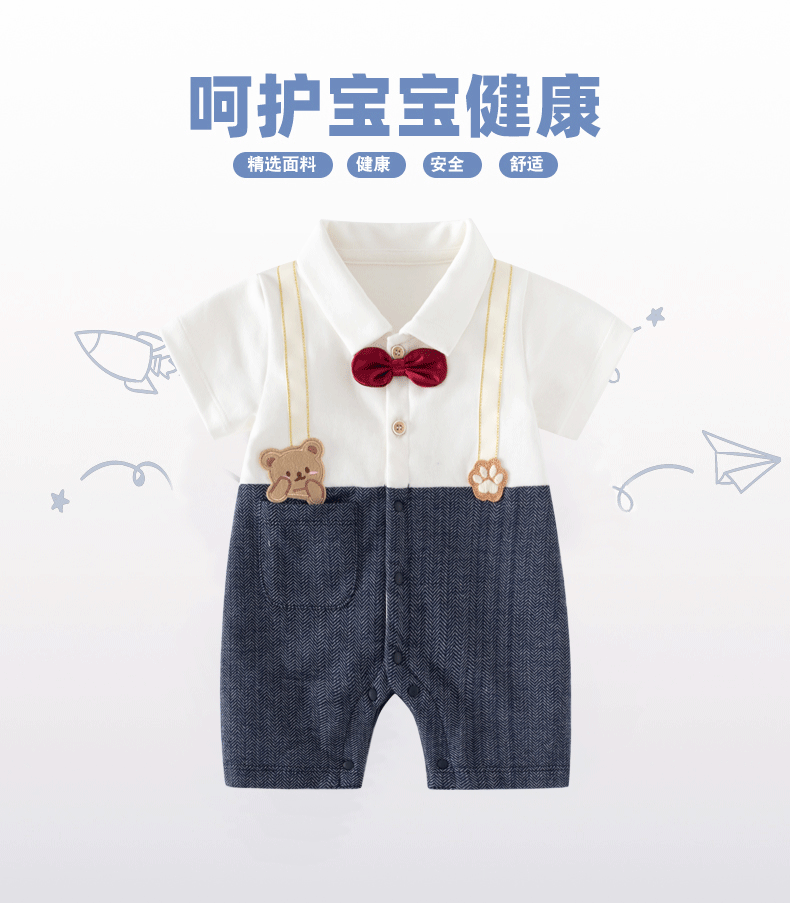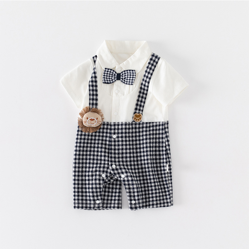 맞춤형 아기 대학 스타일 점프 슈트 아기 소년 여름 짧은 소매 옷 신사 드레스 도매 맞춤형 패턴