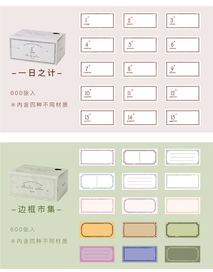 600 입력 메모장 세트 느린 일 시리즈 간단한 작은 신선한 메시지 메모 레트로