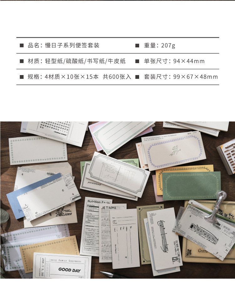 600 입력 메모장 세트 느린 일 시리즈 간단한 작은 신선한 메시지 메모 레트로스토어 가기