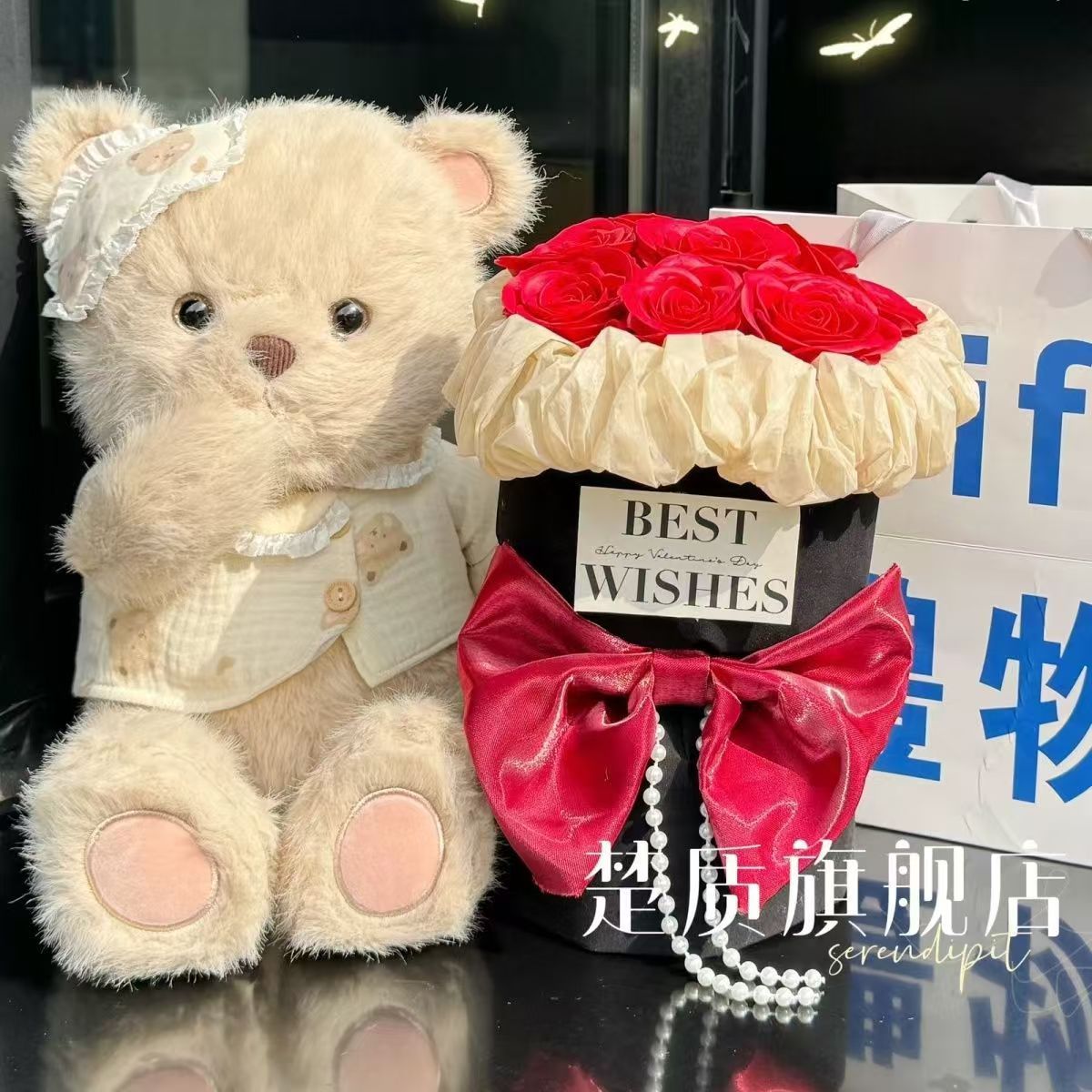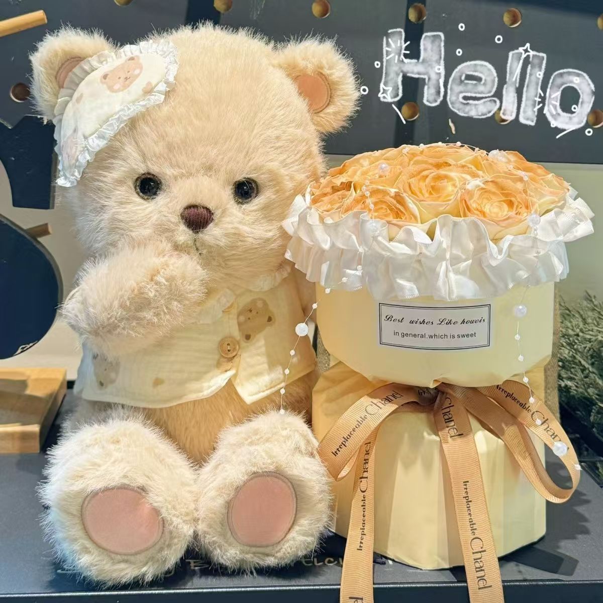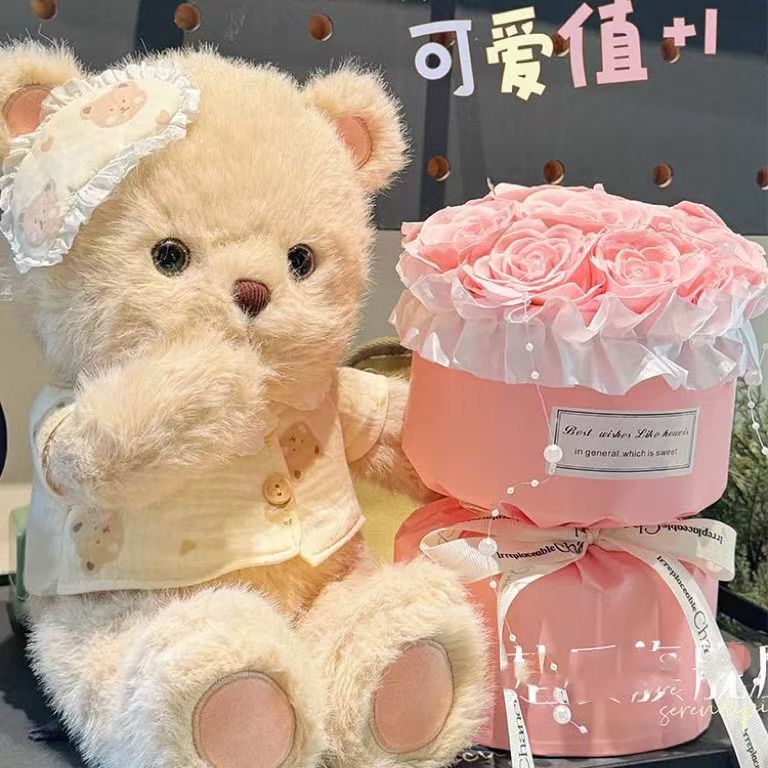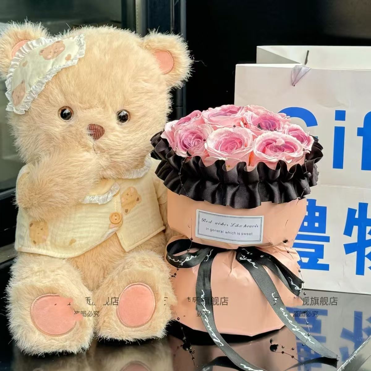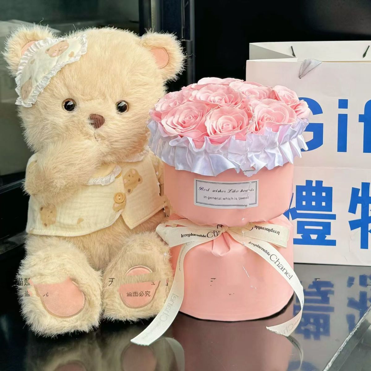 ♔ 굿나잇 베어 인형 로즈 영원한 꽃다발 포옹 버킷 여자아이를 위한 생일 선물 여자친구 가장 친한 친구 크리스마스스토어 가기