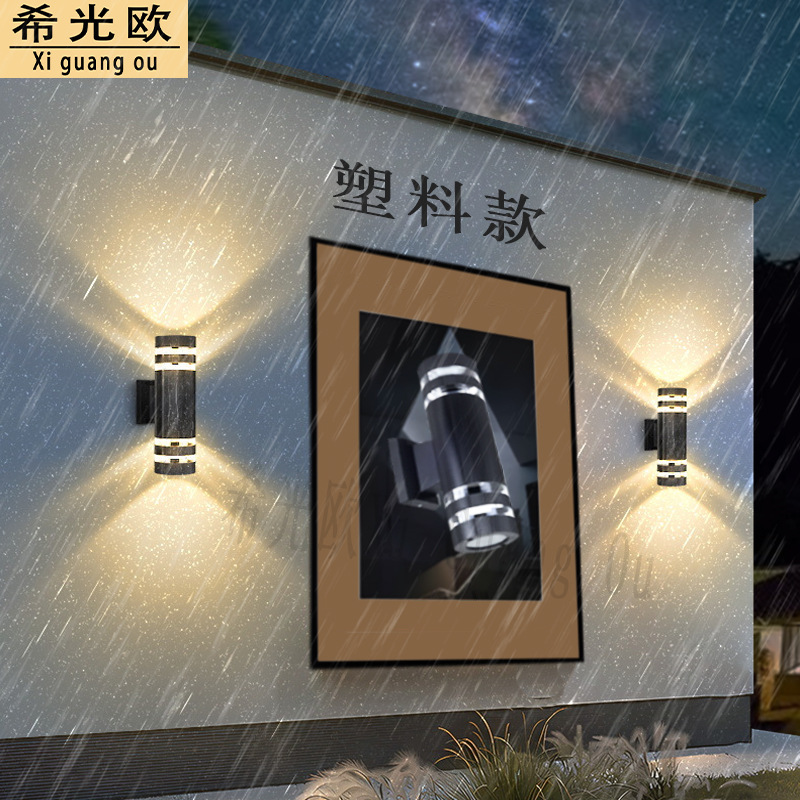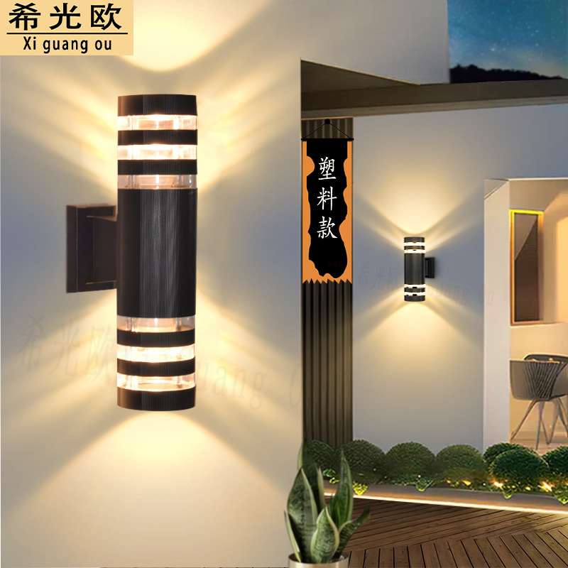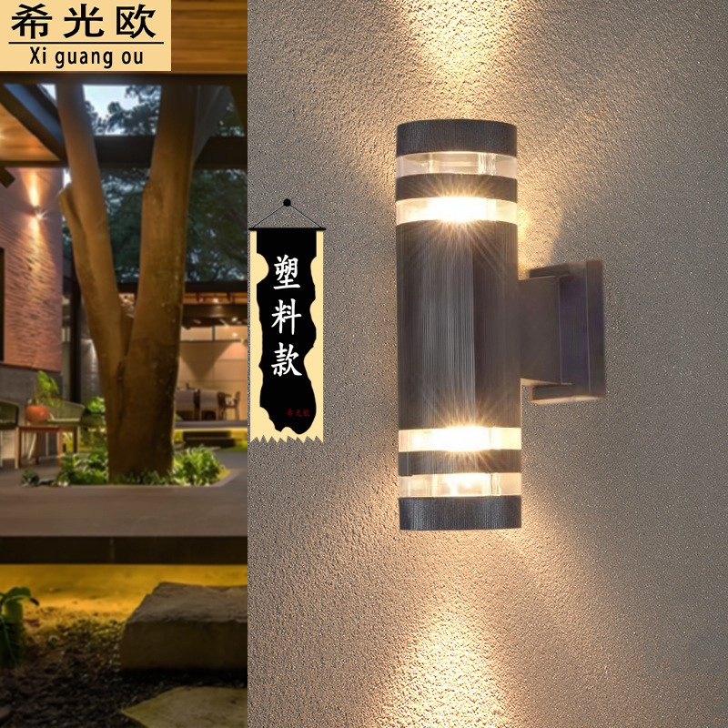 야외 벽 램프 현대 간단한 위아래 플라스틱 쉘 E27 빛나는 정원 램프 현관 문 앞 방수 벽 마운트 램프