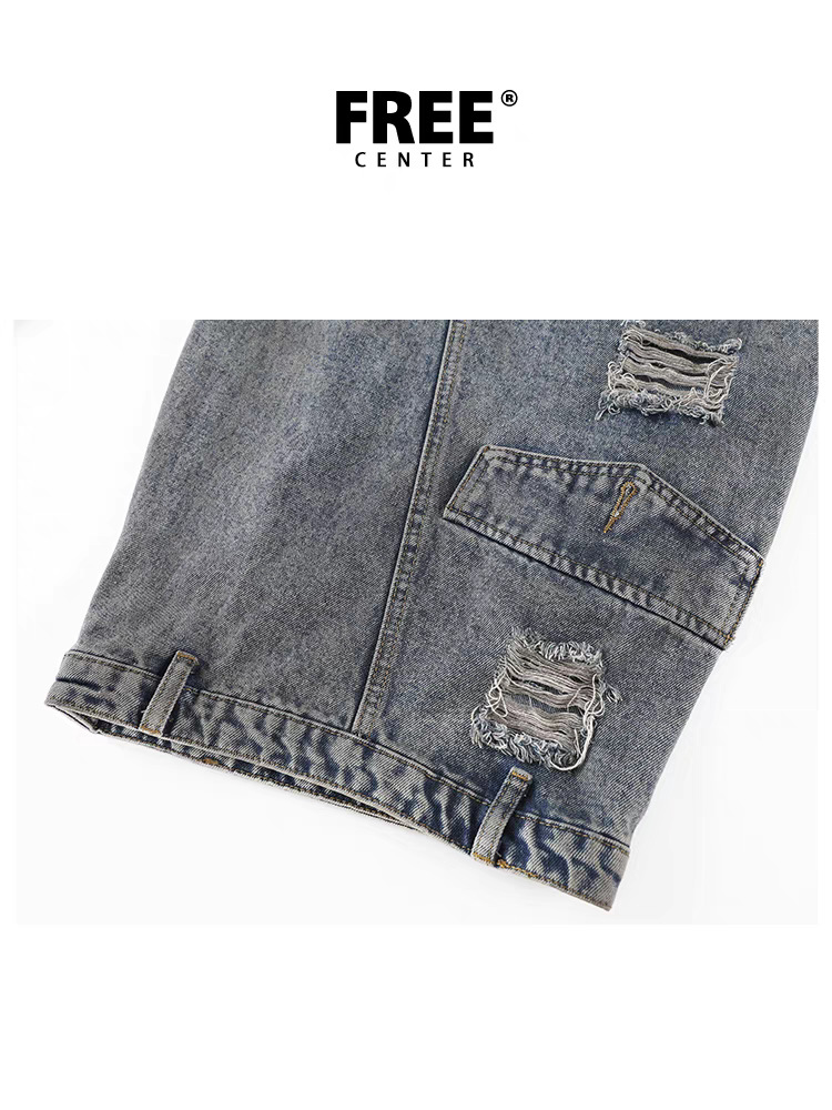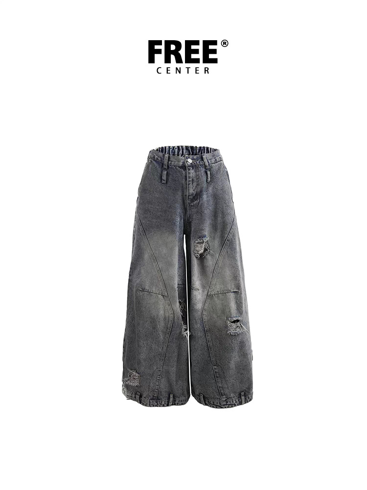 아메리칸 레트로 디컨스트럭티드 워싱 찢어진 청바지 남성 하이 스트리트 패션 브랜드 핸섬 스트리트 팬츠 와이드 팬츠스토어 가기