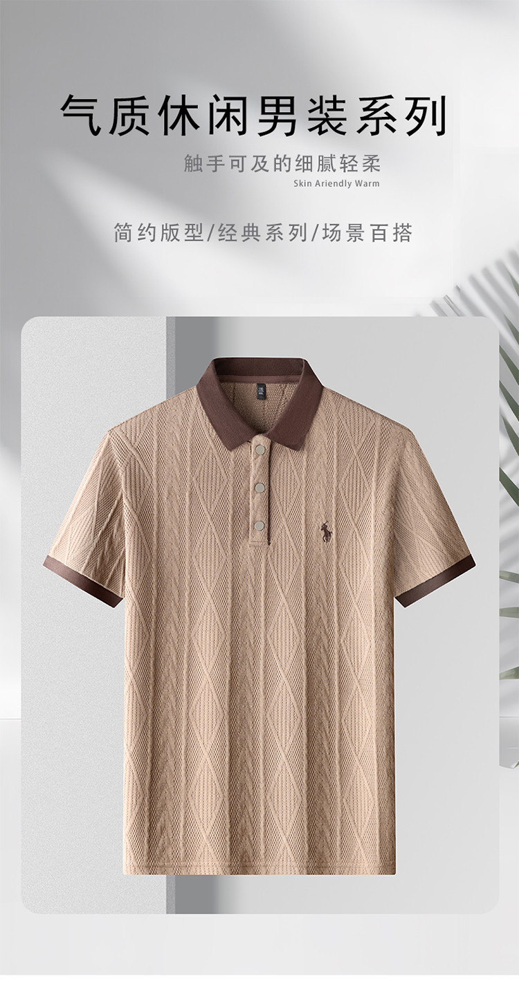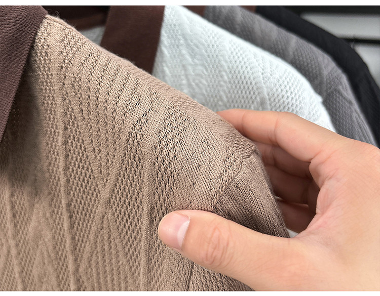 남성용 여름 느슨한 반팔 폴로 셔츠 티셔츠 2025 새로운 니트 질감 탑 티셔츠 크로스 보드 통기성 셔츠 트렌드