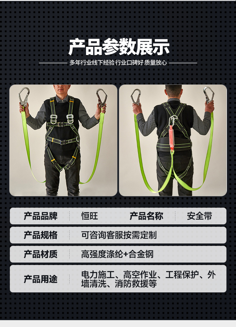 전신 5점식 안전벨트, 이중 대형 후크, 완충팩, 국가표준 등반 및 고소작업용, 이중 등받이, 고소작업 전용스토어 가기