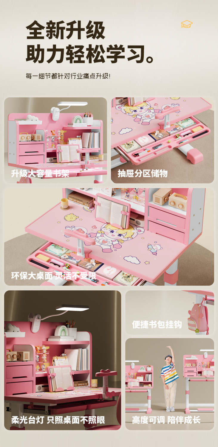 앉은 자세를 교정하고 높이를 조절할 수 있는 어린이 학습 테이블, 책상 조합 세트, 학생용 가정용 책상, 책상스토어 가기