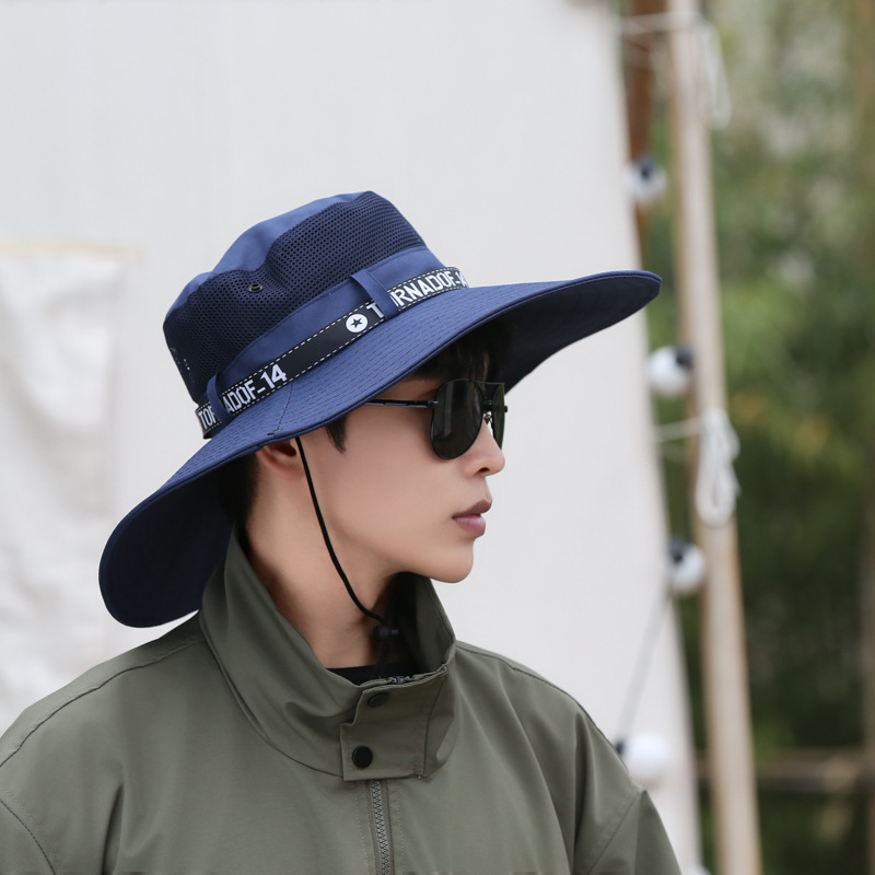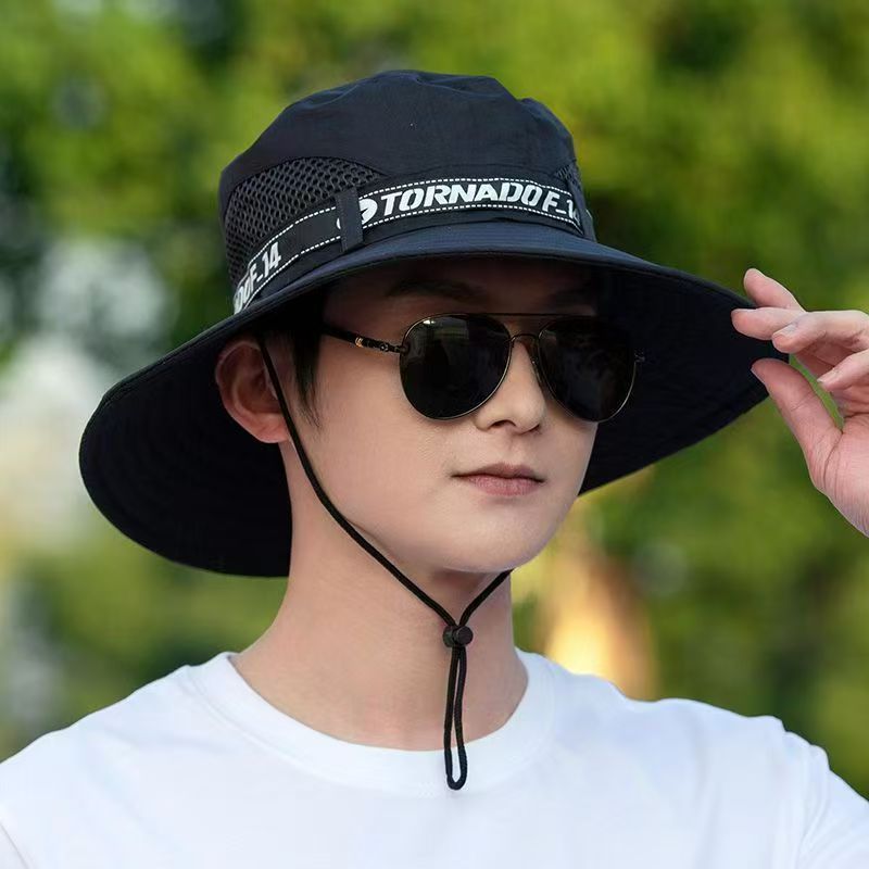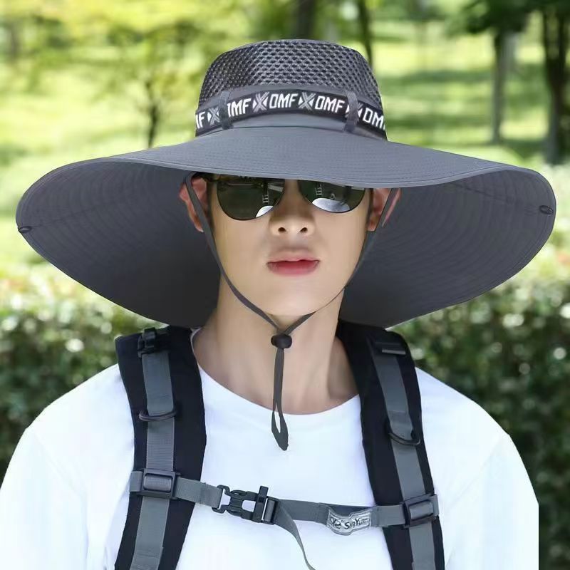 감각 모자 여름 새로운 남자 12cm 태양 모자 어부 모자 야외 태양 보호 모자 등산을위한 통기성 큰 챙 모자스토어 가기