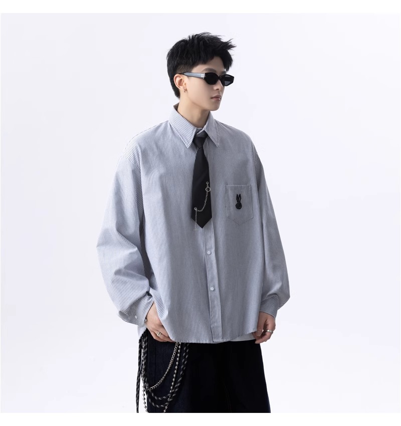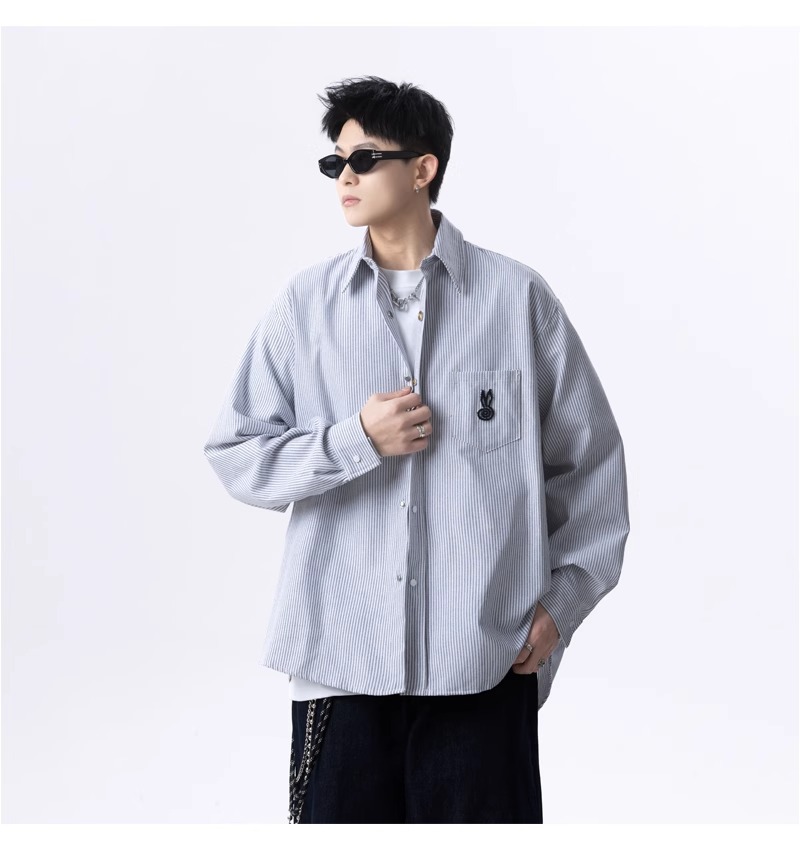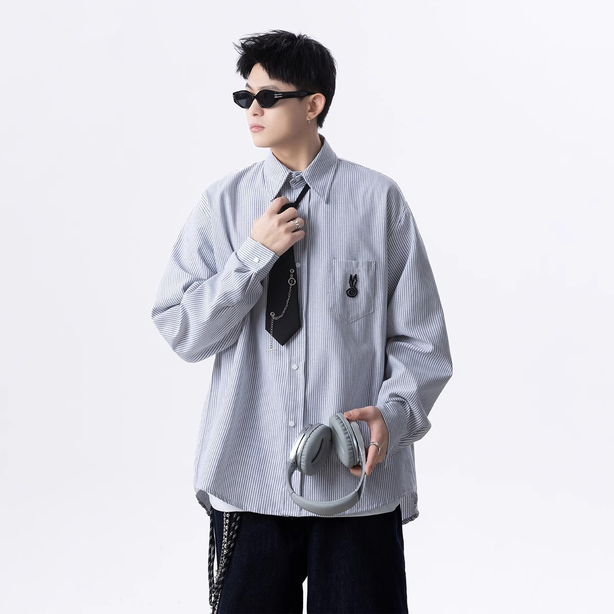 일본 도파민 스트라이프 긴팔 셔츠 남성용 2025 여름 신작 청소년 루즈 캐주얼 셔츠 재킷