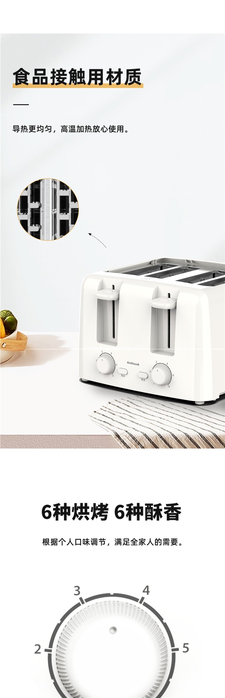 ArchiCook 토스터 가정용 토스터 다기능 완전 자동 아침 식사 토스트 4 조각 베이킹 및 가열스토어 가기