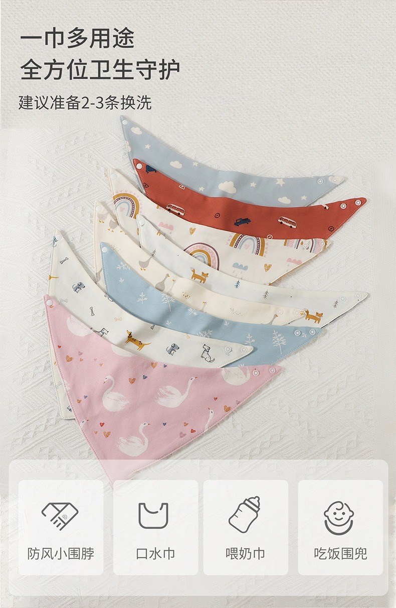 아기 턱받이, 침 수건, 어린이 먹는 턱받이, 아기 만화 면 삼각 수건, 아기 구토 방지 침 수건