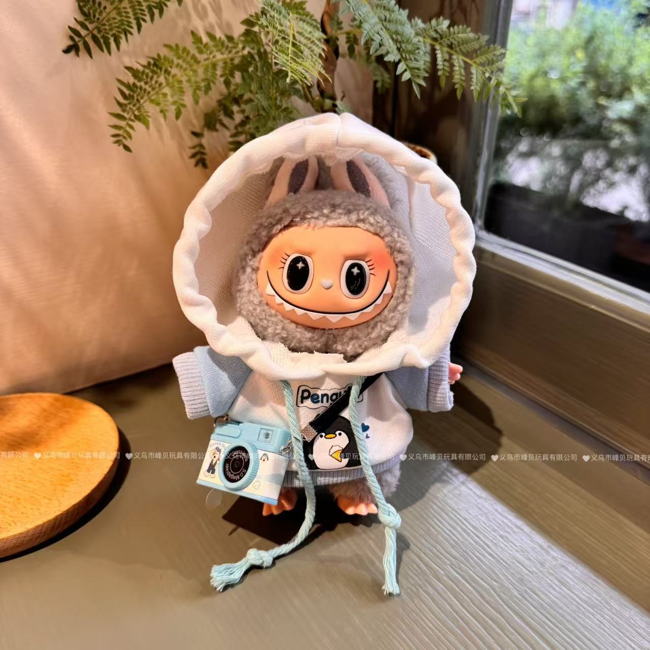 새로운 Labubu Labubo Wa 옷 17cm 블라인드 박스 펜던트 1 ~ 2 세대 비닐 인형 세트 아기 옷스토어 가기