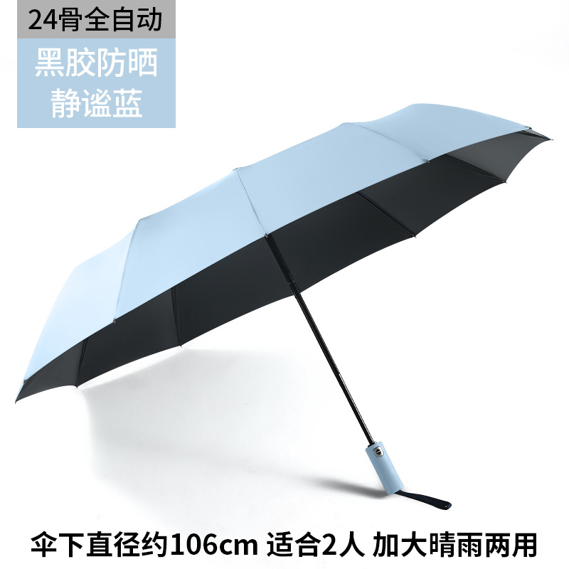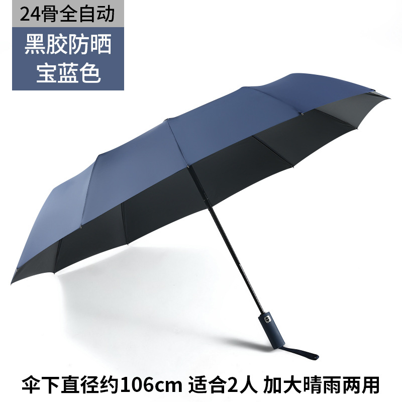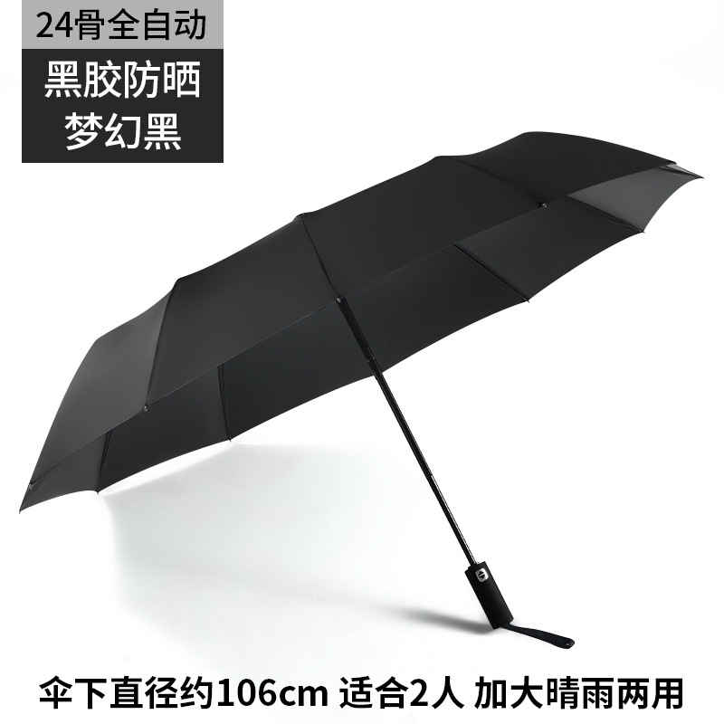 완전 자동 접이식 대형 우산, 비가 오나 눈이 오나, 태양 보호, 강화, 두껍고 강하며 바람에 강한 24 뼈 및 다중 뼈