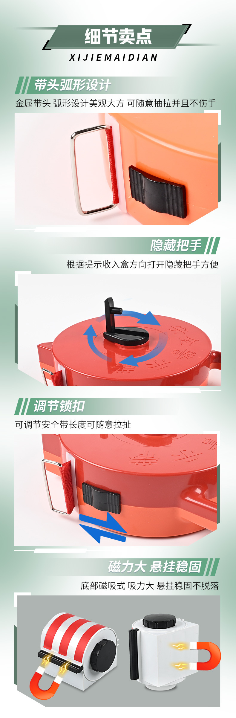 자석 원형 상자가 있는 안전 경고 테이프 휴대용 건설 경고 테이프 두꺼운 캔버스 텔레스코픽 경고 반사 절연 테이프스토어 가기