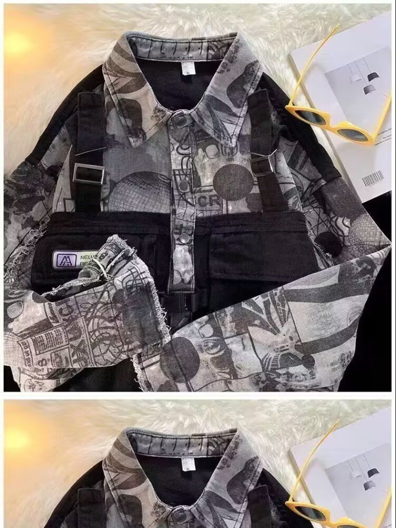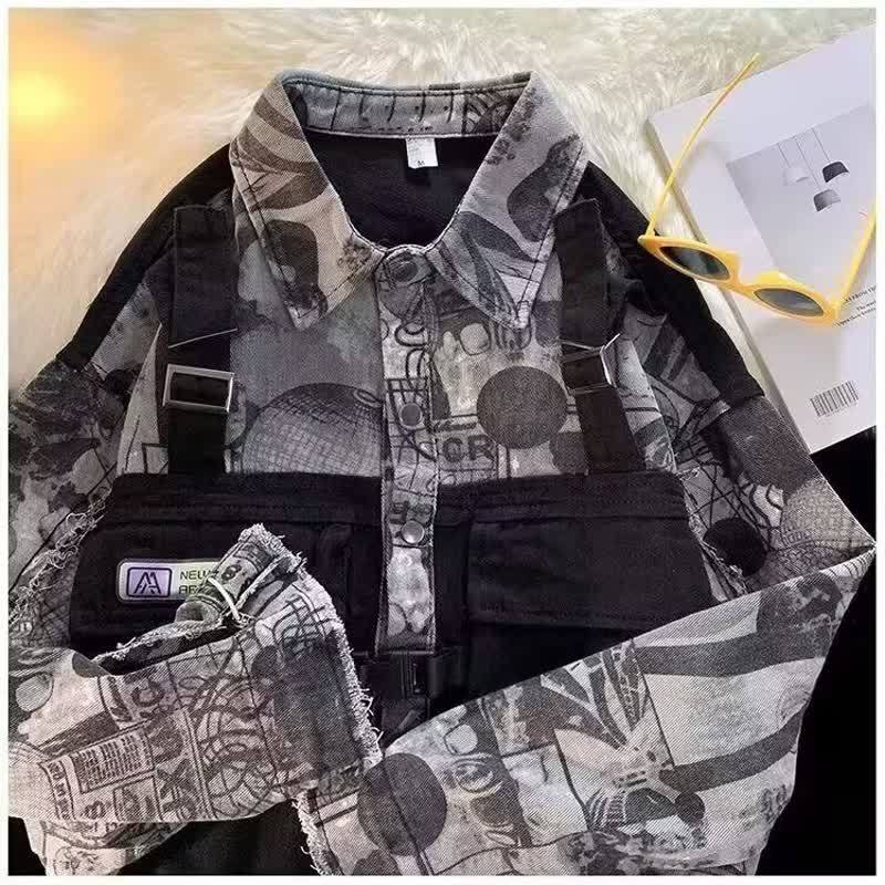 봄, 가을 남성용 작업복 기능성 스타일 페이크 투피스 재킷 트렌디하고 멋진 일본 트렌디 브랜드 하이 스트리트 데님 재킷 남성 X스토어 가기
