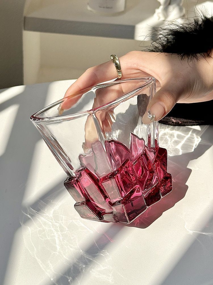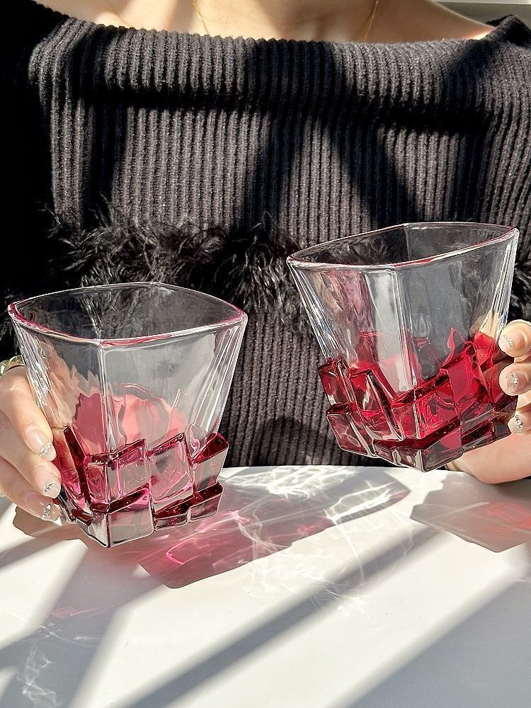 아트 디자인 아이스 큐브 컵 맥주 컵 라이트 럭셔리 디자인 컬러 유리 워터 컵 크리 에이 티브 칵테일 위스키 컵