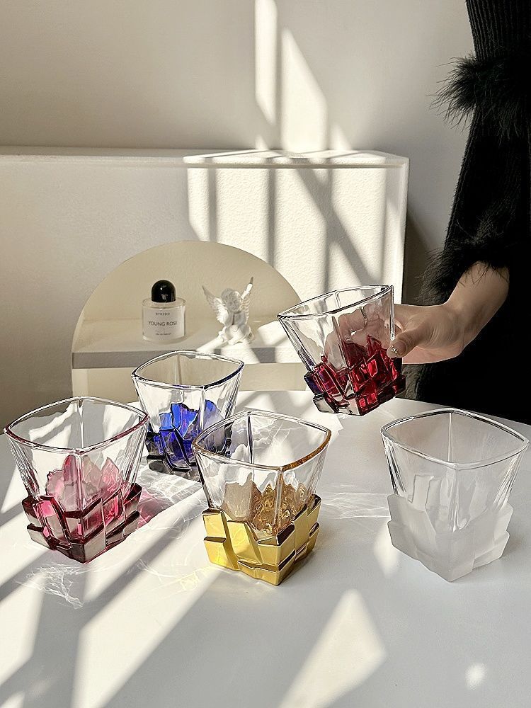 아트 디자인 아이스 큐브 컵 맥주 컵 라이트 럭셔리 디자인 컬러 유리 워터 컵 크리 에이 티브 칵테일 위스키 컵스토어 가기