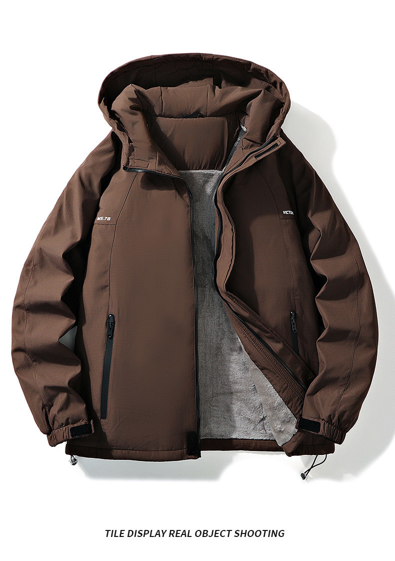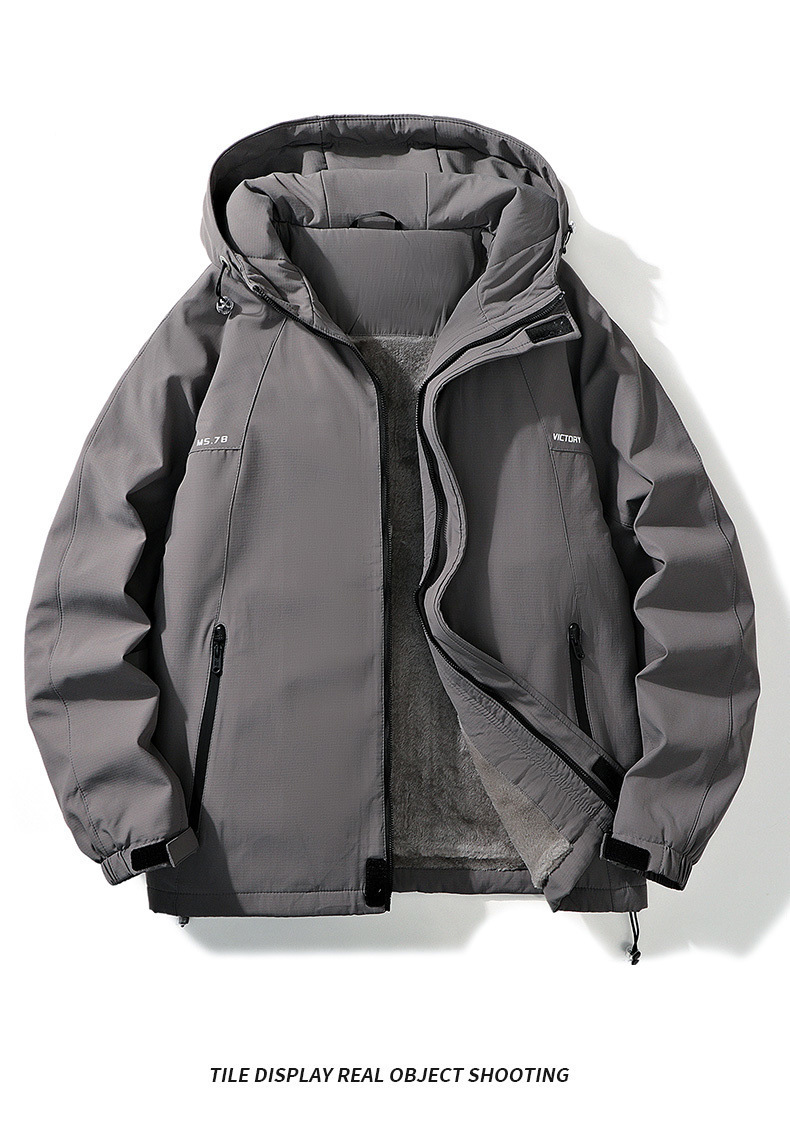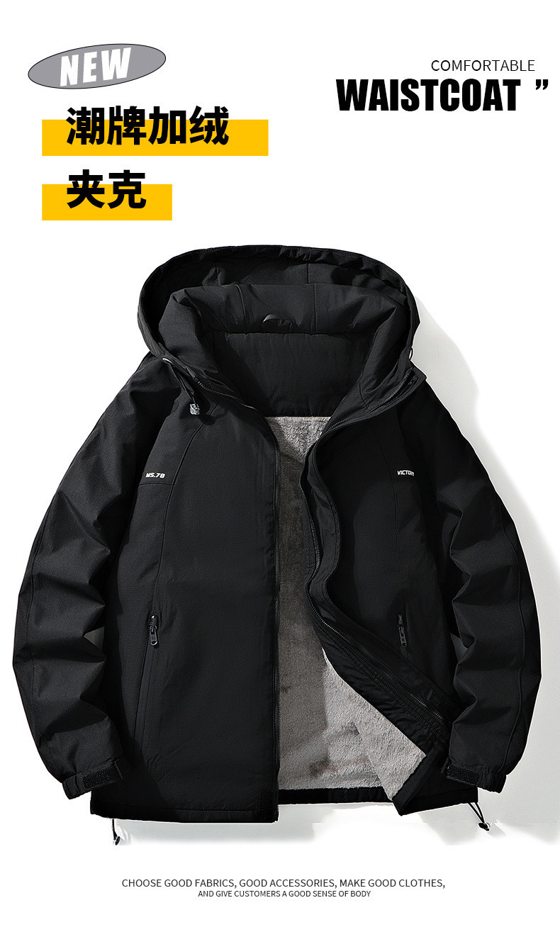 후드 자켓 겨울 야외 방풍 및 방수 후드 자켓 남성 벨벳 두꺼운 자켓 남성 홍콩 스타일 자켓 남성