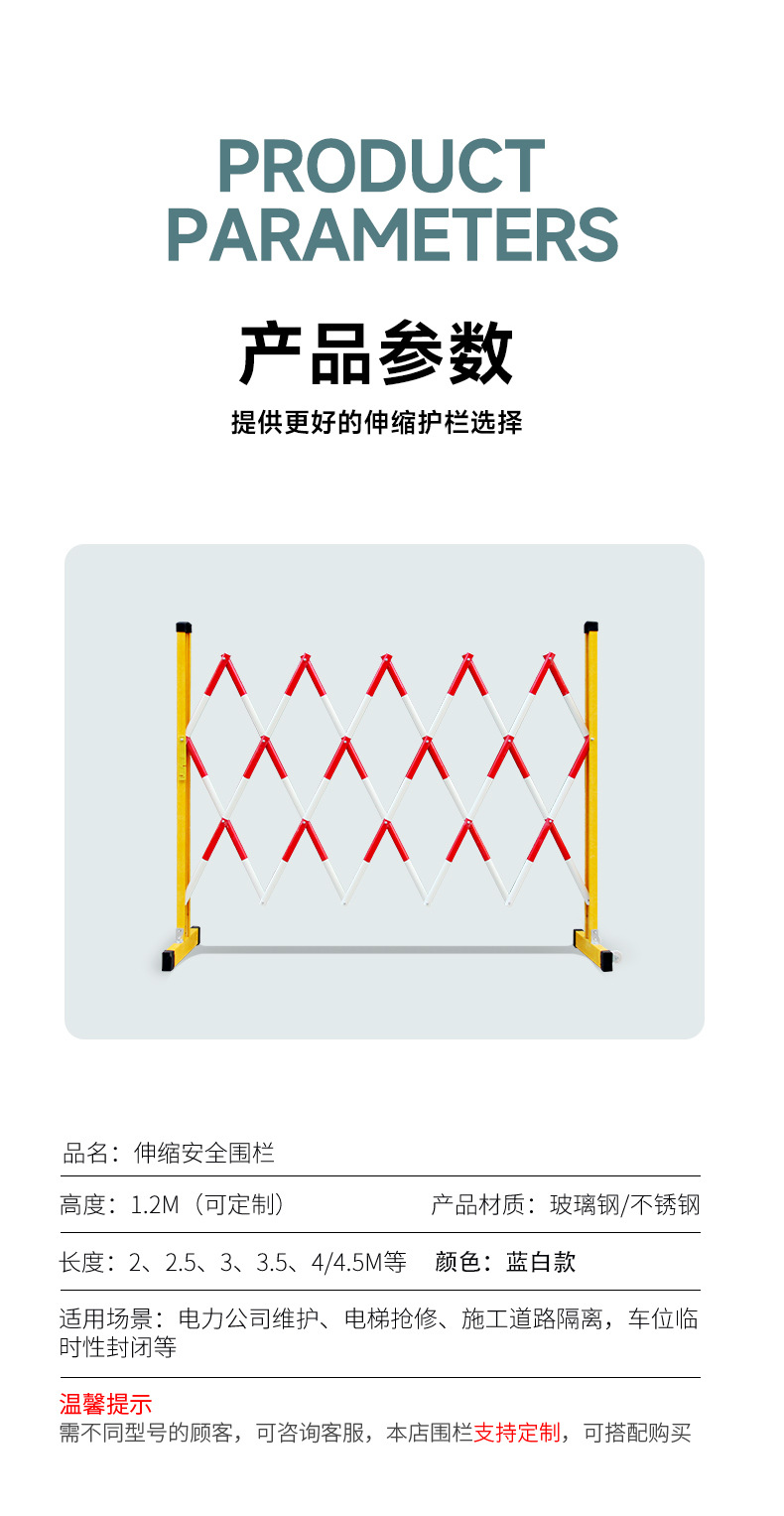 유리 섬유 텔레스코픽 울타리 전기 경고 건설 울타리 이동식 가드 레일 경고 격리 보호 가드 레일스토어 가기