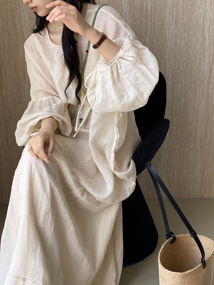 장즈오 100 라미 세트 여성 하이 엔드 캐주얼 패션 셔츠 탑 스커트 투피스 6281