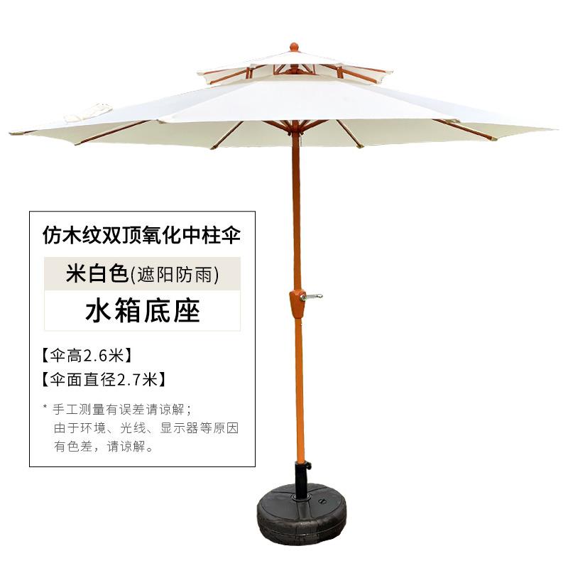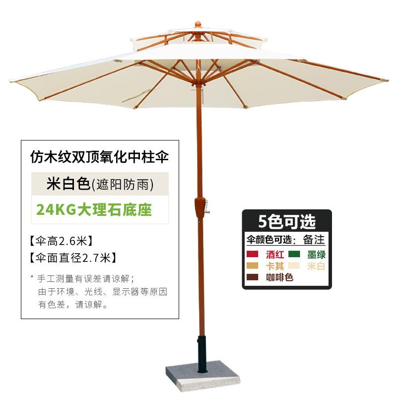 • 2.7m 핸드크랭크 미색 더블 탑 우드 그레인 우산 + 베이스 색상 옵션