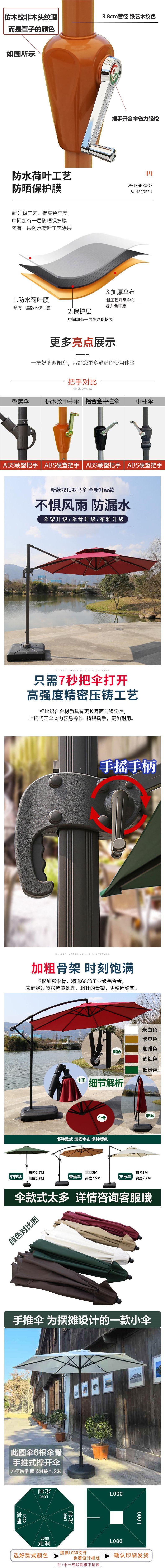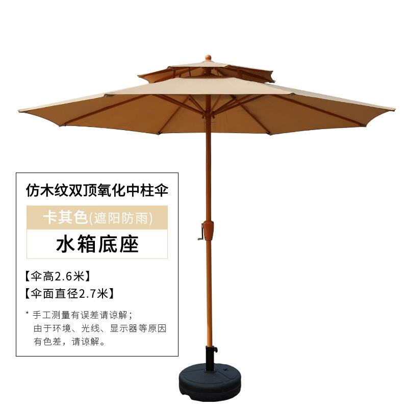 • 2.7m 핸드 크랭크 카키 더블 탑 우드 그레인 우산 + 베이스, 다양한 색상 사용 가능