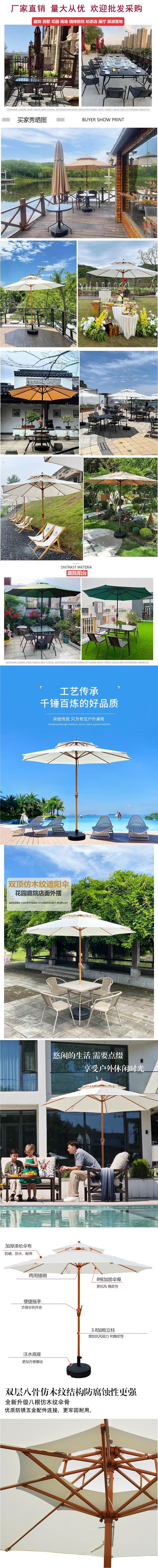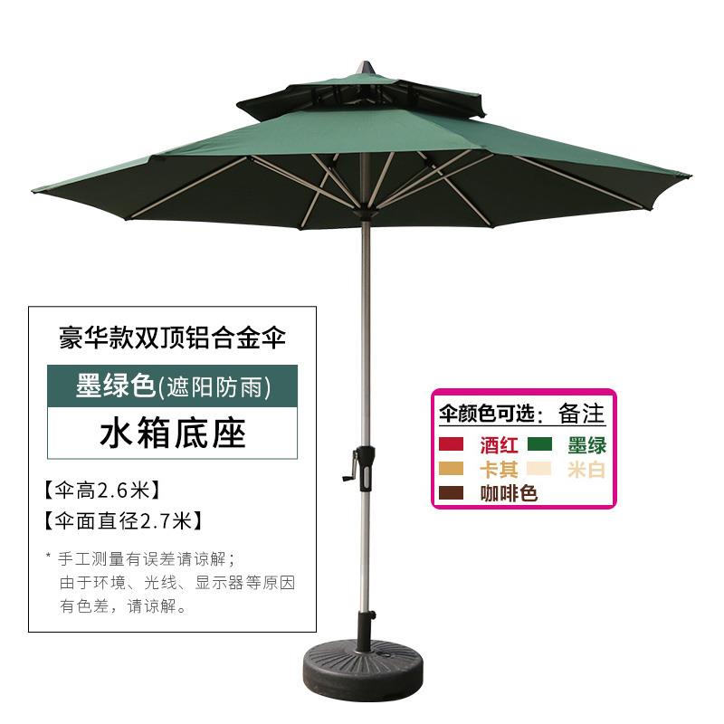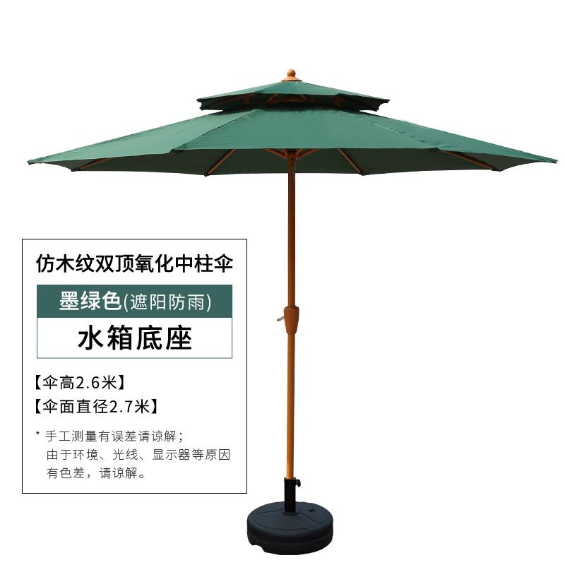 • 2.7m 수동식 짙은 녹색 이중 상단 나뭇결 중앙 기둥 우산 + 베이스, 다양한 색상 사용 가능