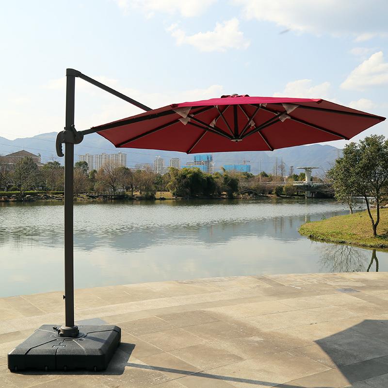 • 2.7m 핸드크랭크 버건디 센터 컬럼 우산 + 베이스
