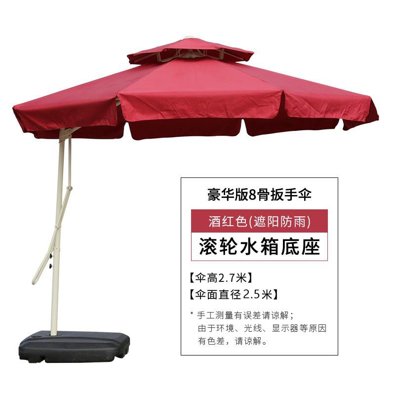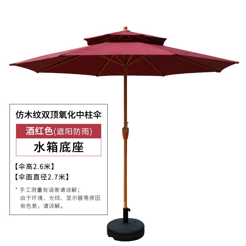 • 2.7m 핸드 크랭크 버건디 더블 탑 우드 그레인 기둥 우산 + 베이스, 다양한 색상 사용 가능
