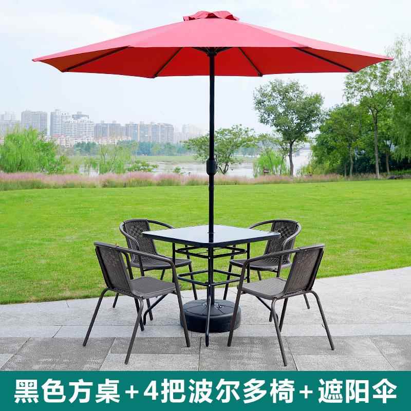 • 의자 4개 + 검정색 사각 테이블 80개 + 중앙 기둥 우산 + 베이스