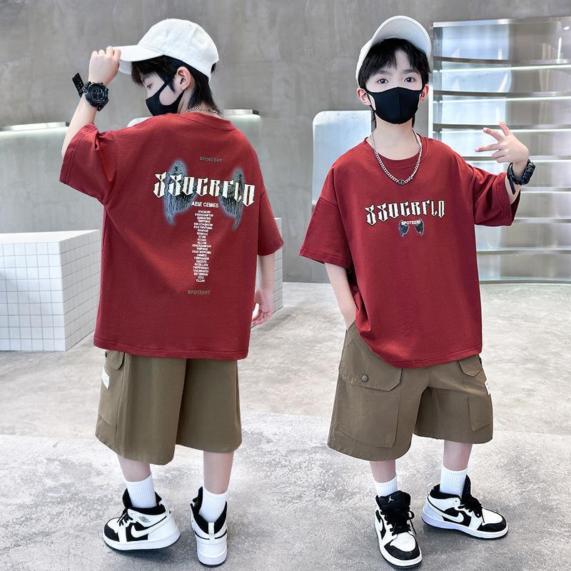 2025 새로운 여름 소년 순수 코튼 반팔 캐주얼 중대형 어린이 유행 및 잘 생긴 만화 인쇄 유행 짧은 T