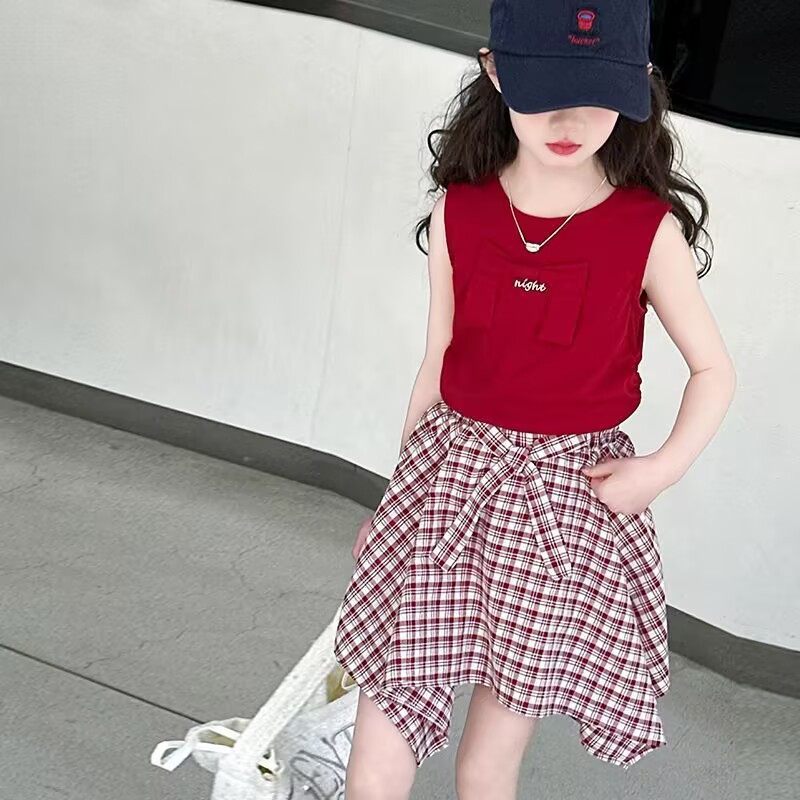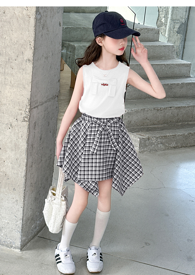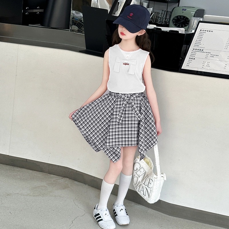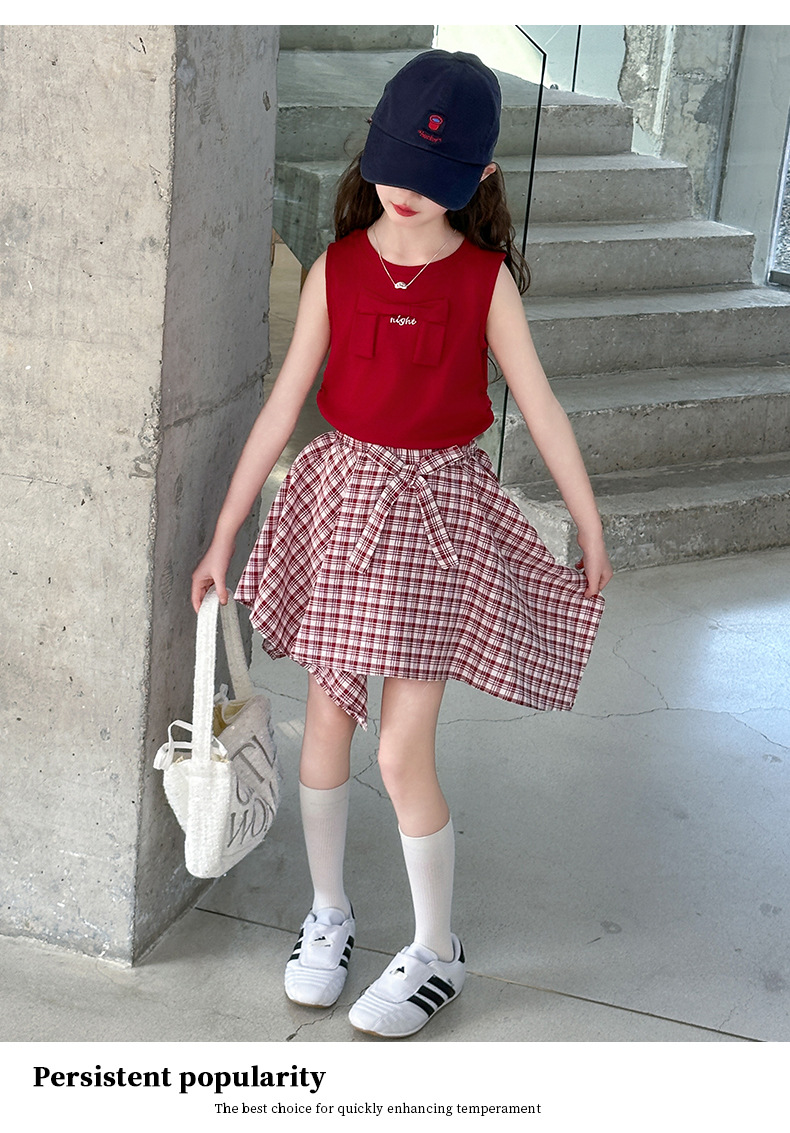 여자 여름 정장 스커트 새로운 여자 여름 반팔 티셔츠 어린이 불규칙 스커트 스트리트 댄스 착용