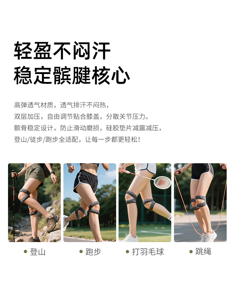 스포츠 무릎 패드, 슬개골 벨트, 반월판 관절 보호 장비, 달리기 및 등산용 실리콘 가압 통기성 얇은 HX43