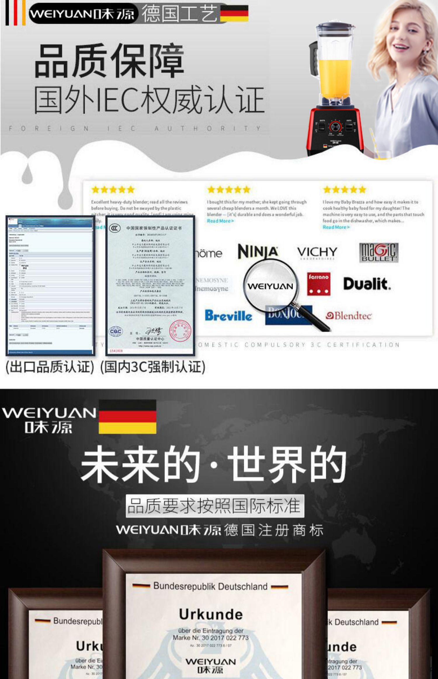 독일 Weiyuan 상업용 벽 파괴 기계 밀크 티 샵 고출력 스무디 가정용 주스 아침 식사 가게 두유 스무디 기계