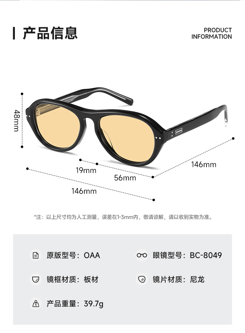 쉬루 동일 스타일 GM 소재 선글라스 Oaa 여성용 원형 프레임 큰 얼굴 슬림 효과 남성용 고급 선글라스 BC8049