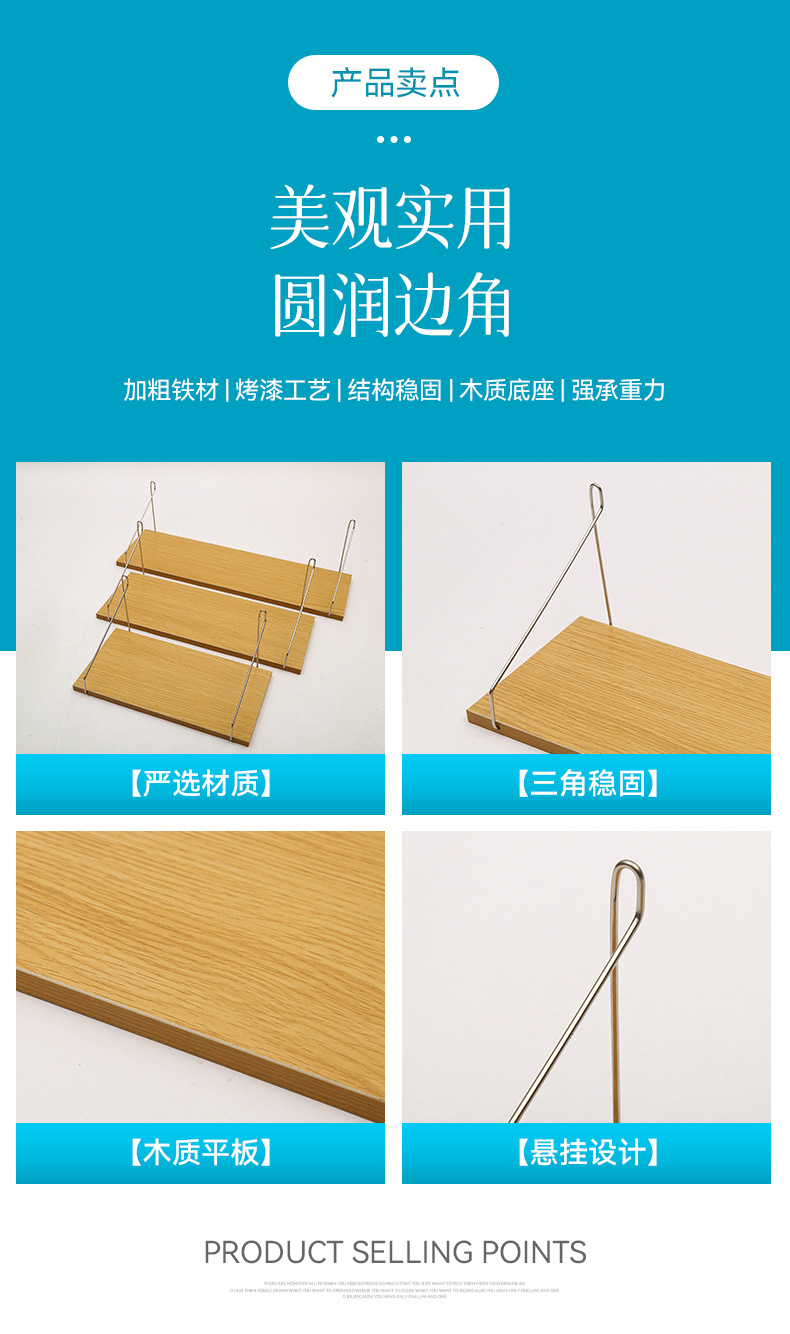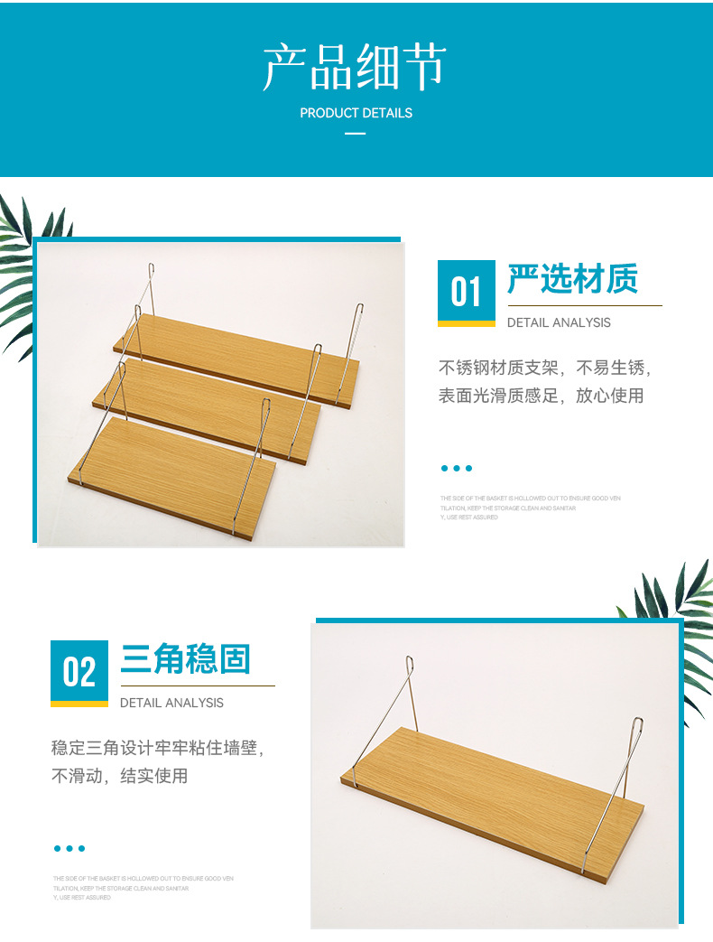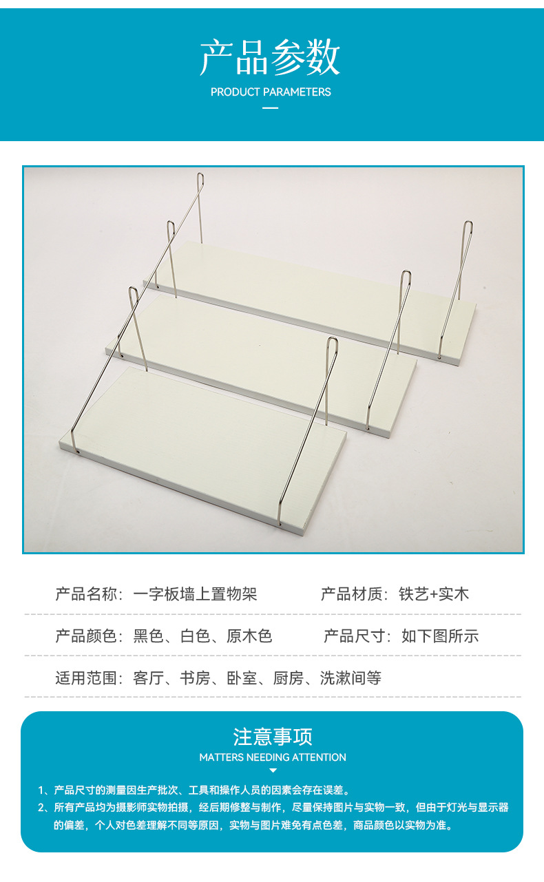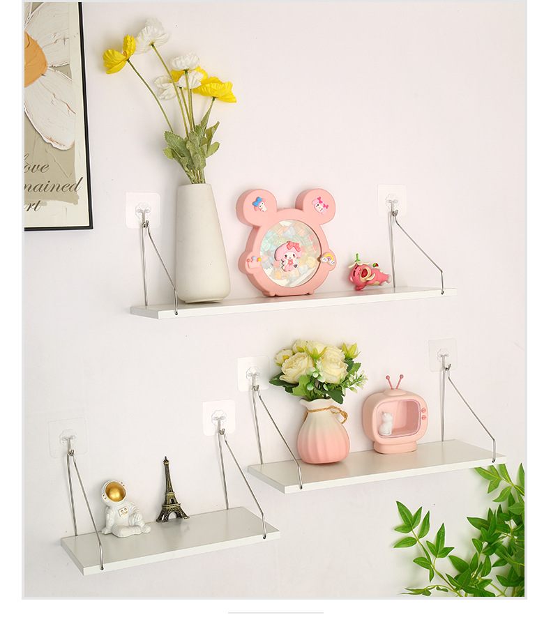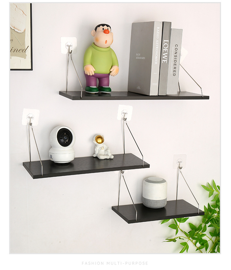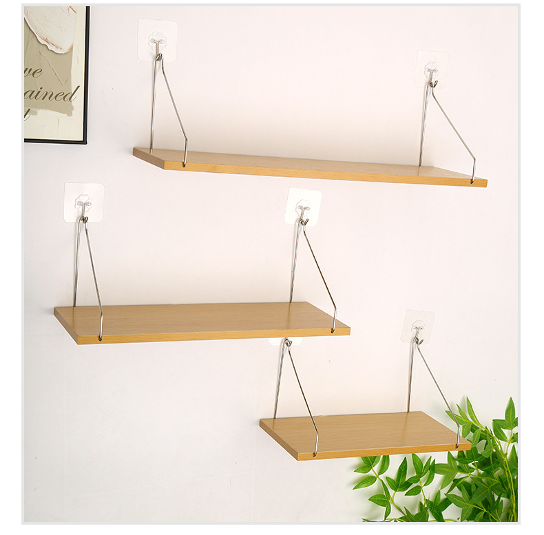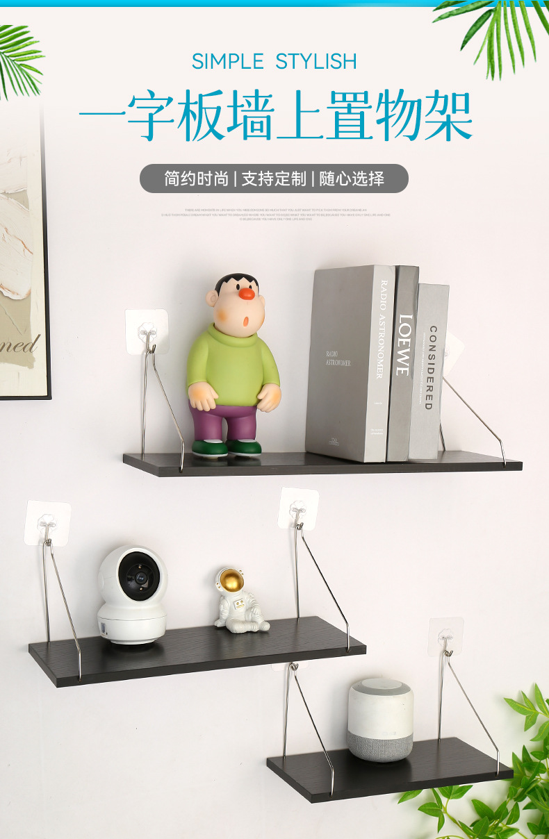 벽에 구멍을 뚫지 않고 설치할 수 있는 일자형 보드 선반, 일자형 선반 책장, 벽 장식용 원목 소형 선반