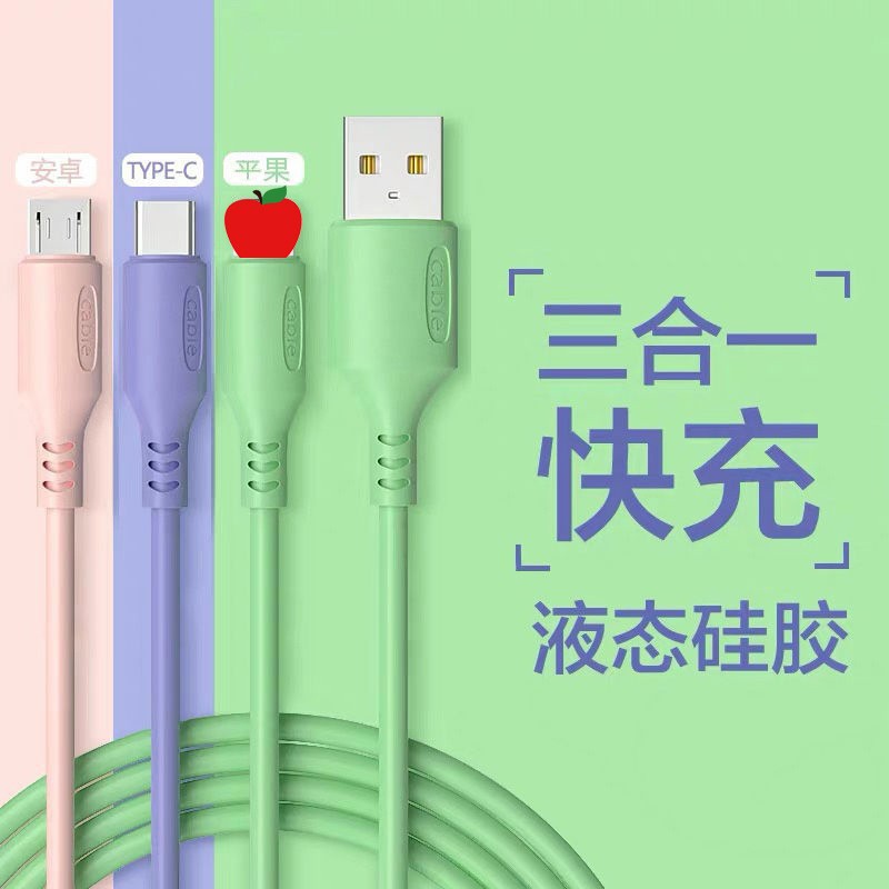 Apple Android typec 고속 충전 3-in-1 충전 케이블 선물에 적합한 액체 컬러 1-3 데이터 케이블
