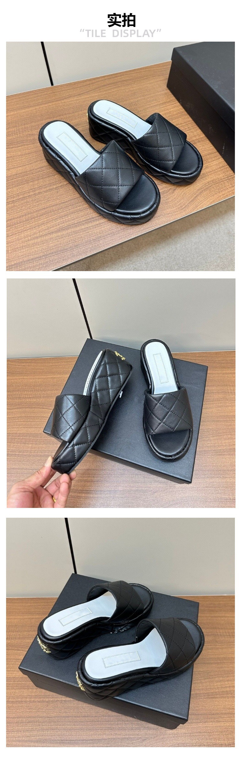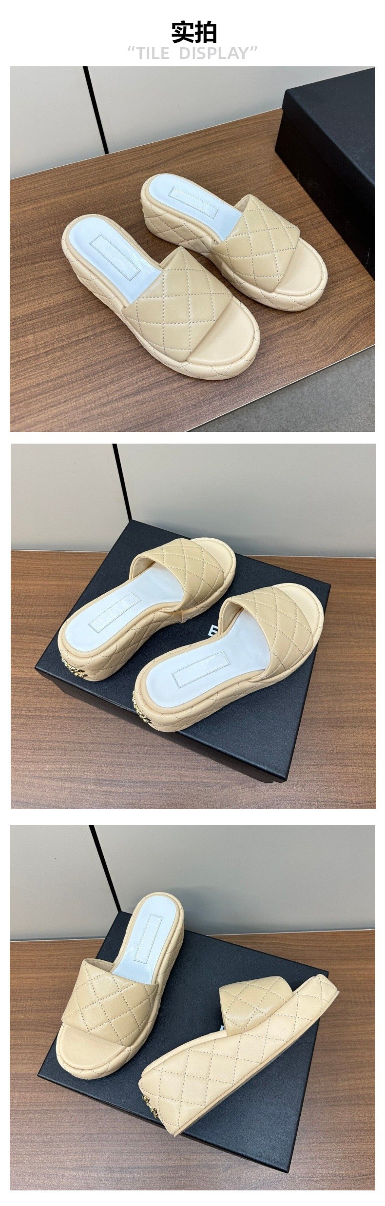 클래식 마름모 슬리퍼 두꺼운 밑창 2024 여름 새로운 스타일 작은 사람들을위한 여성용 정품 가죽 오픈 발가락 샌들