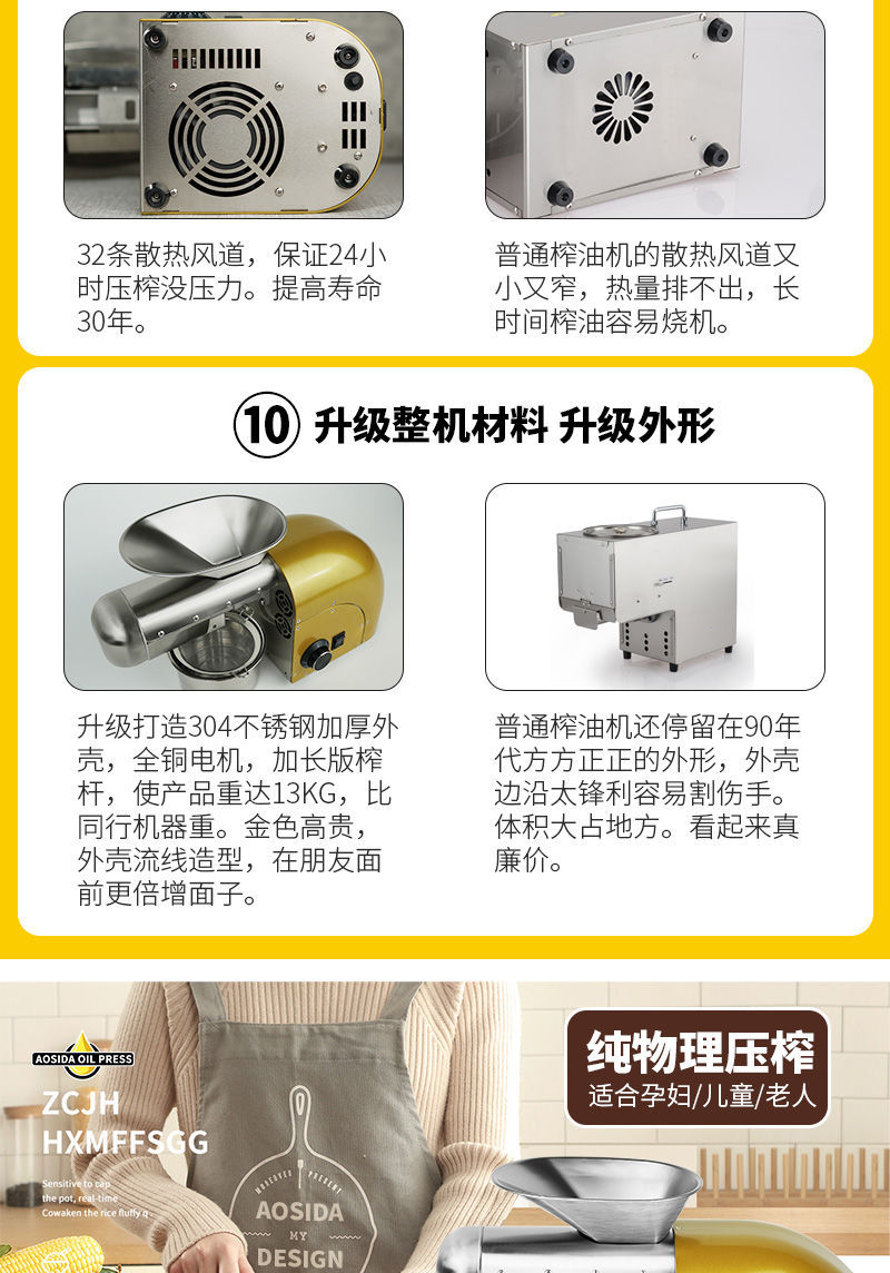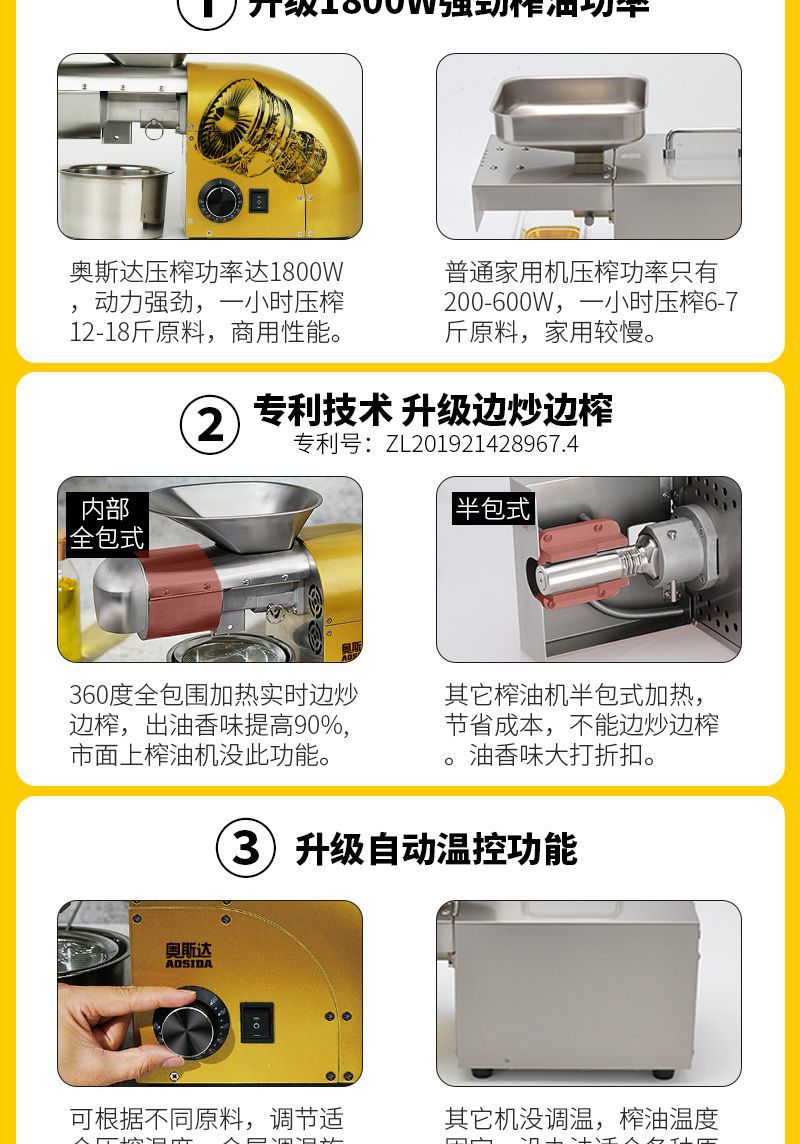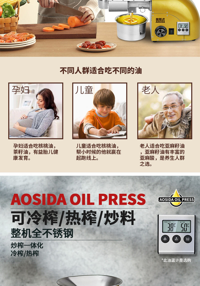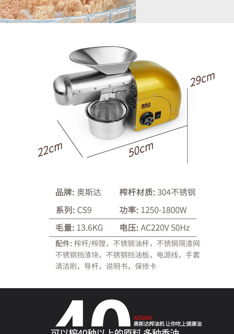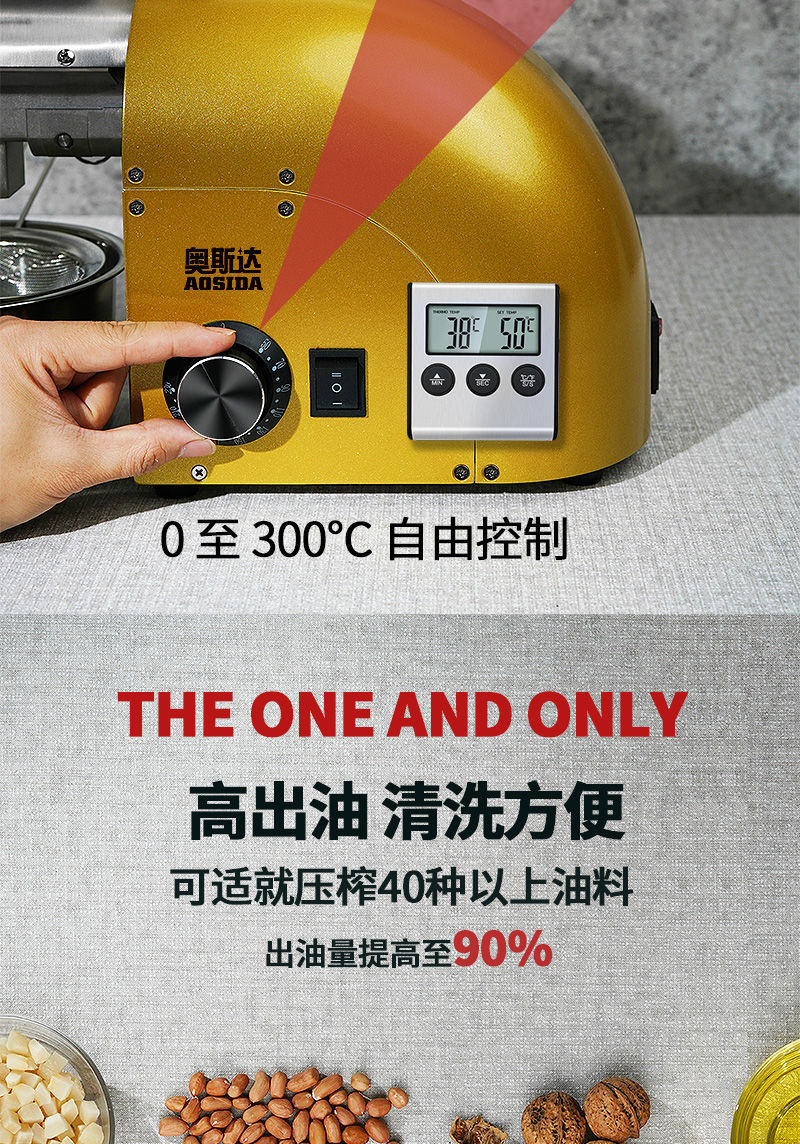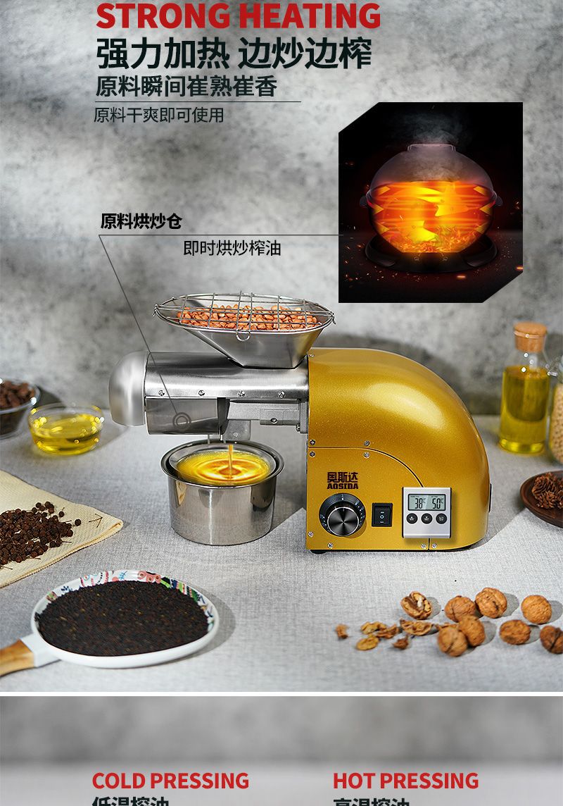 새로운 Ostar 오일 프레스 소형 가정용 스테인레스 스틸 가정용 간단한 자동 땅콩 오일 프레스 오일 기계스토어 가기