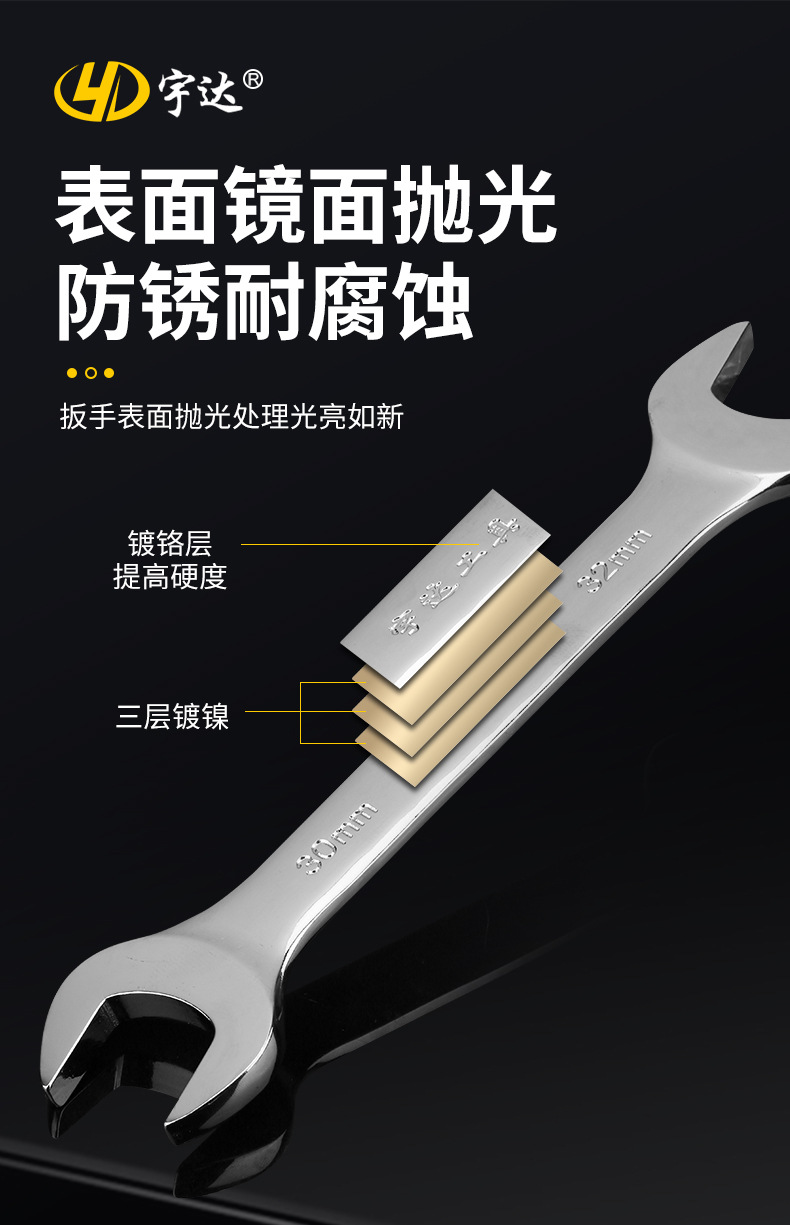 공장 직송 양두 오픈형 렌치, 다양한 규격, 두꺼운 고경도, 기계 수리용 특수, 거울면 마감, 이중 용도 렌치스토어 가기