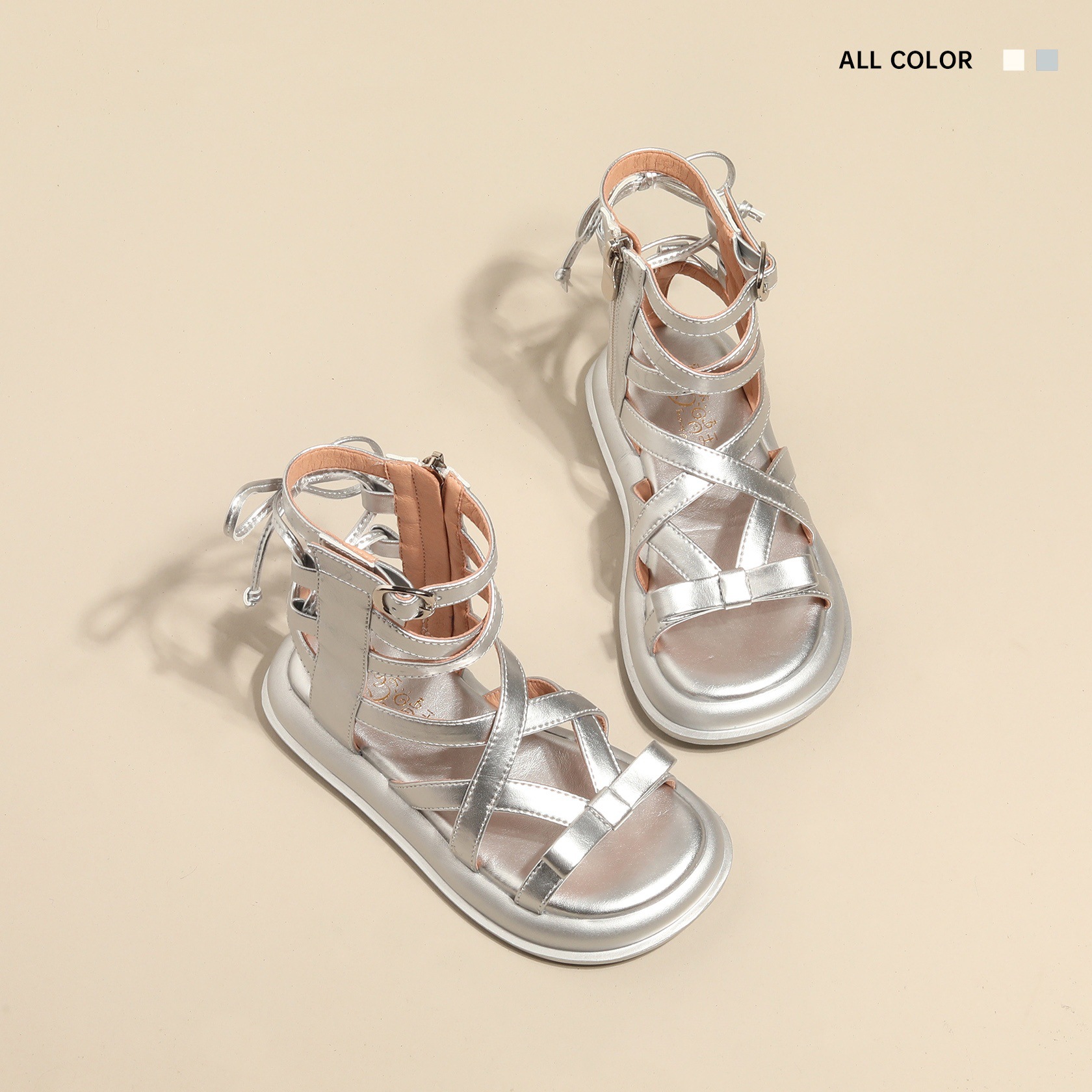 로마 샌들 소녀 여름 2025 새로운 어린이 신발 소녀 공주 여름 인기 큰 어린이 하이 탑 실버