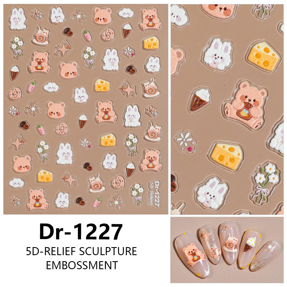 Redanco 양각 기능 스타일 인터넷 연예인 인기 네일 아트 스티커 치즈 베어 웨어러블 네일 네일 데칼 Dr1227