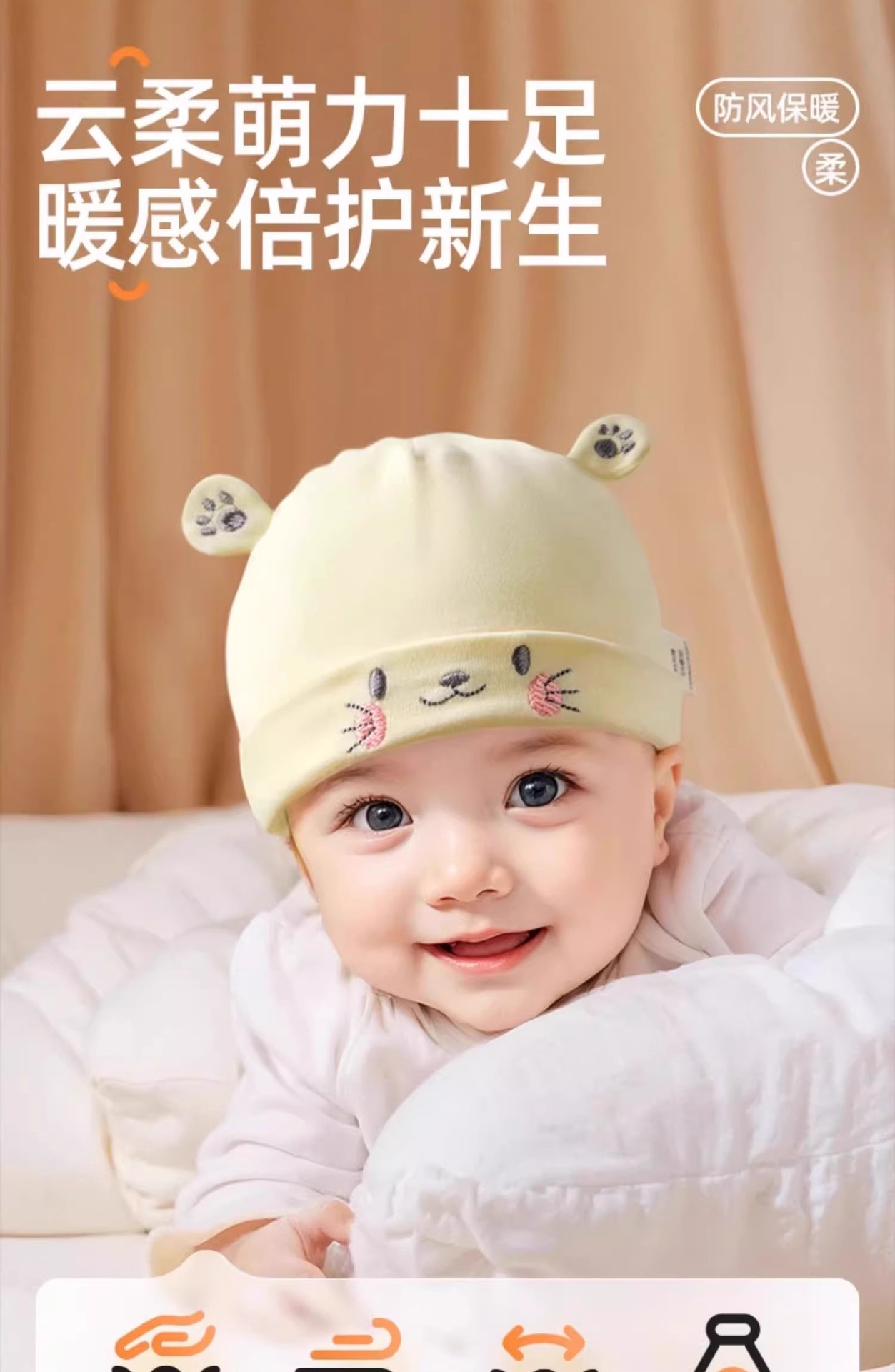 Jingqi 아기 모자 봄과 여름 스타일 0-3 개월 유아 순수 코튼 신생아 봄과 여름 태아 모자 천문 모자스토어 가기
