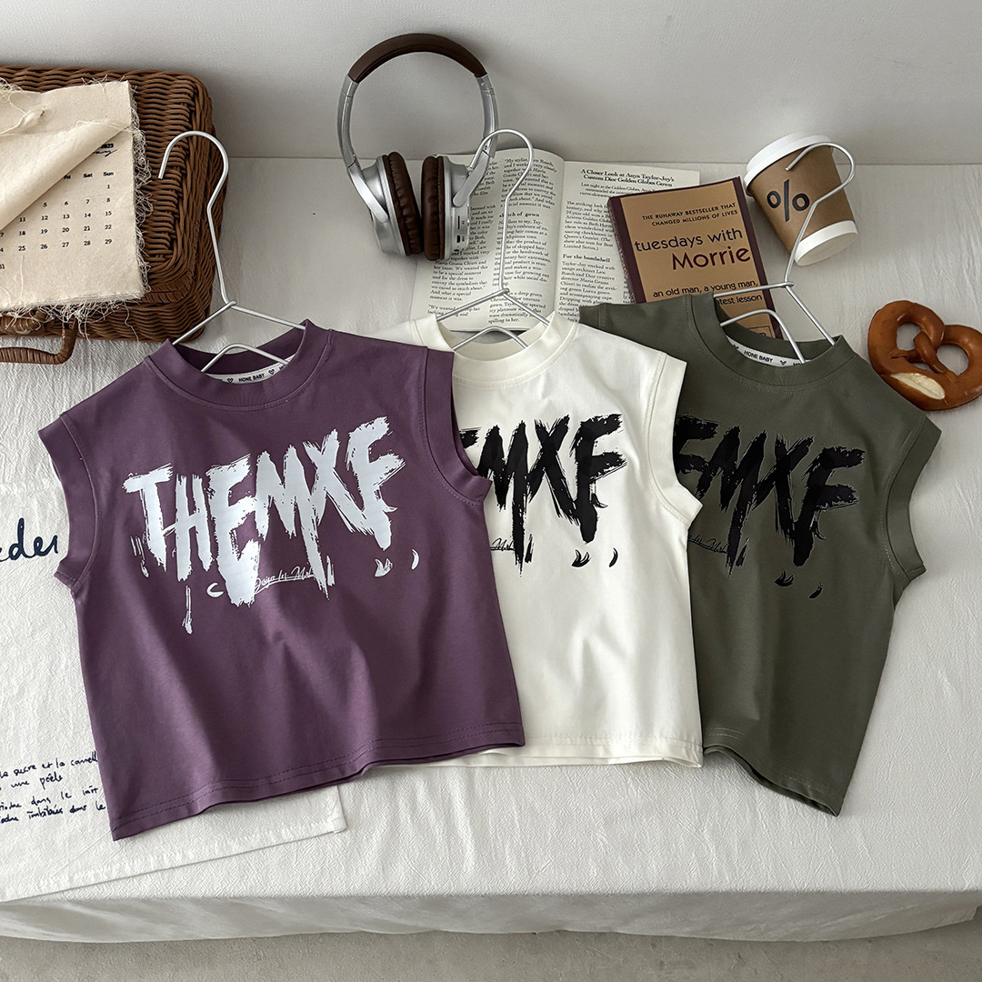 아동용 조끼 2025 여름 새 캔디 컬러 티셔츠 소년과 소녀 캐주얼 스타일 중대형 아동용 얇은 여름 옷스토어 가기