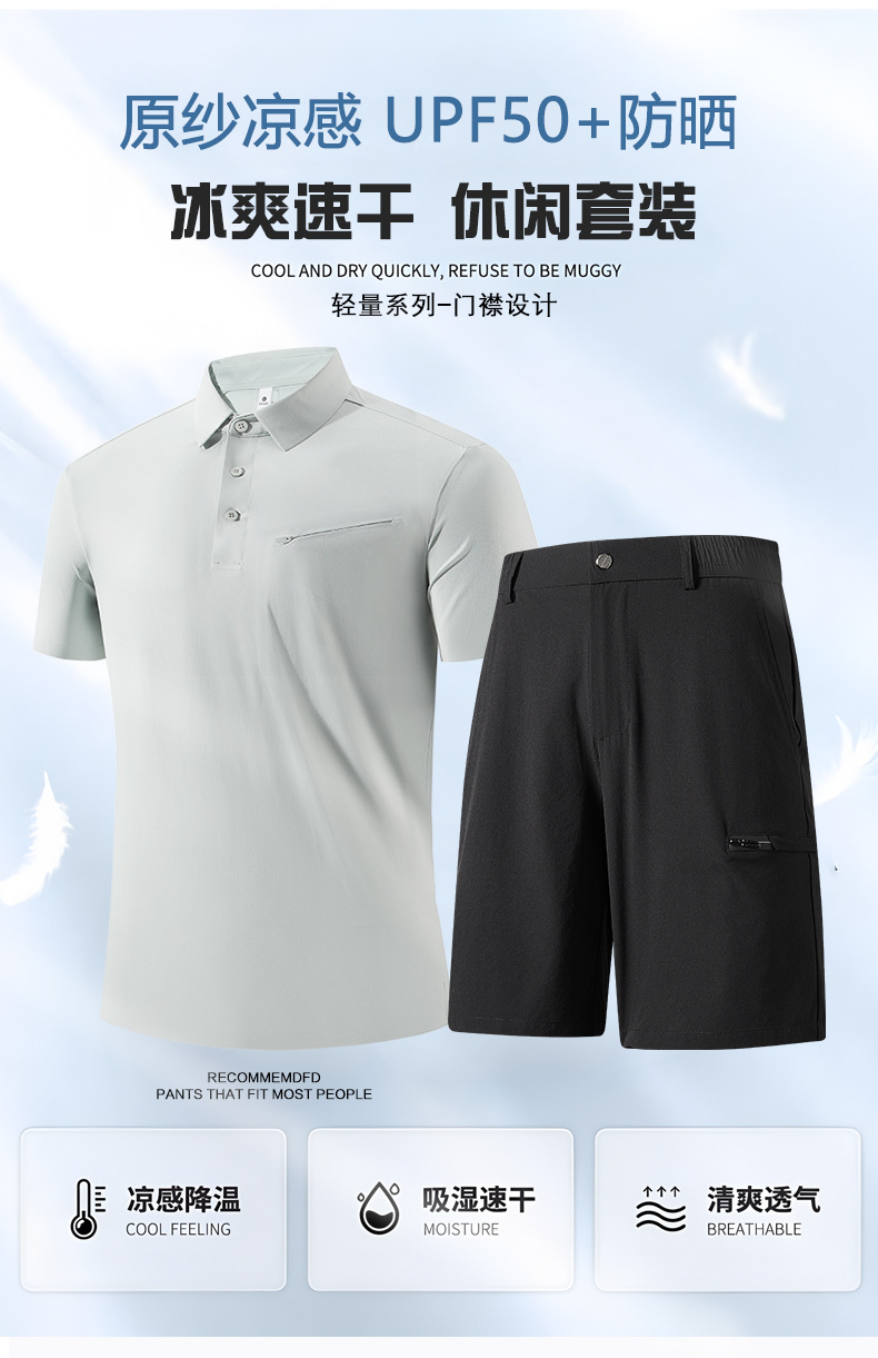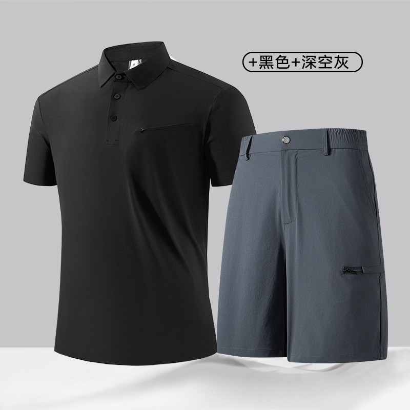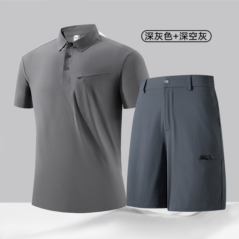 남성용 통기성 속건성 반팔 폴로 셔츠 2025 여름 신작 남성복 청소년 캐주얼 심플 다용도 투피스 세트