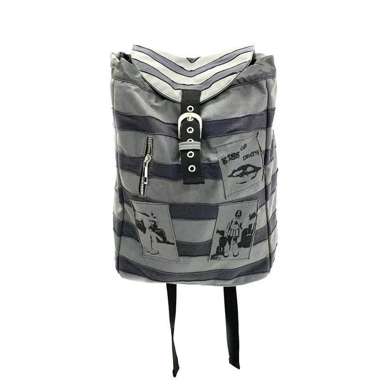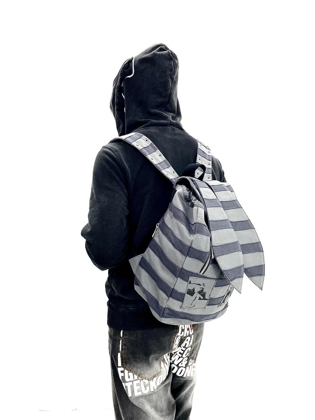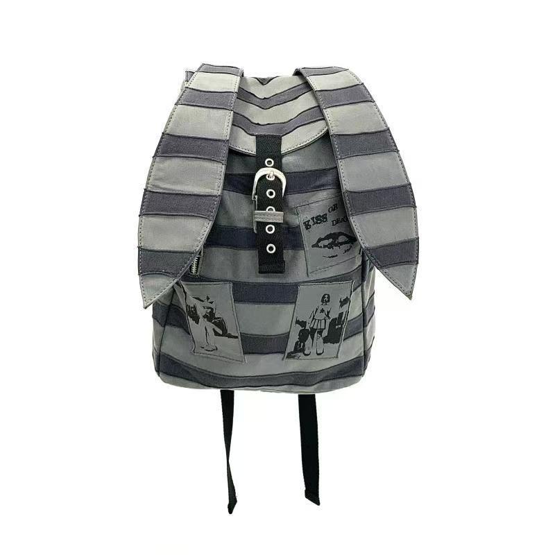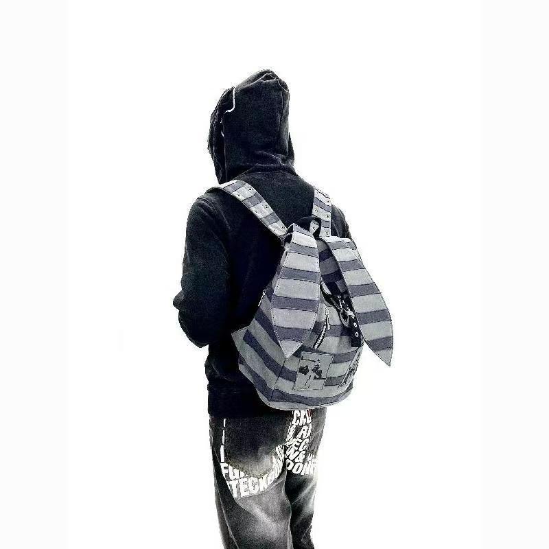 SAUCE 오리지널 신제품 스트라이프 스플라이싱 토끼 귀 배낭 펑크 록 서브컬쳐 패치 프린트 배낭