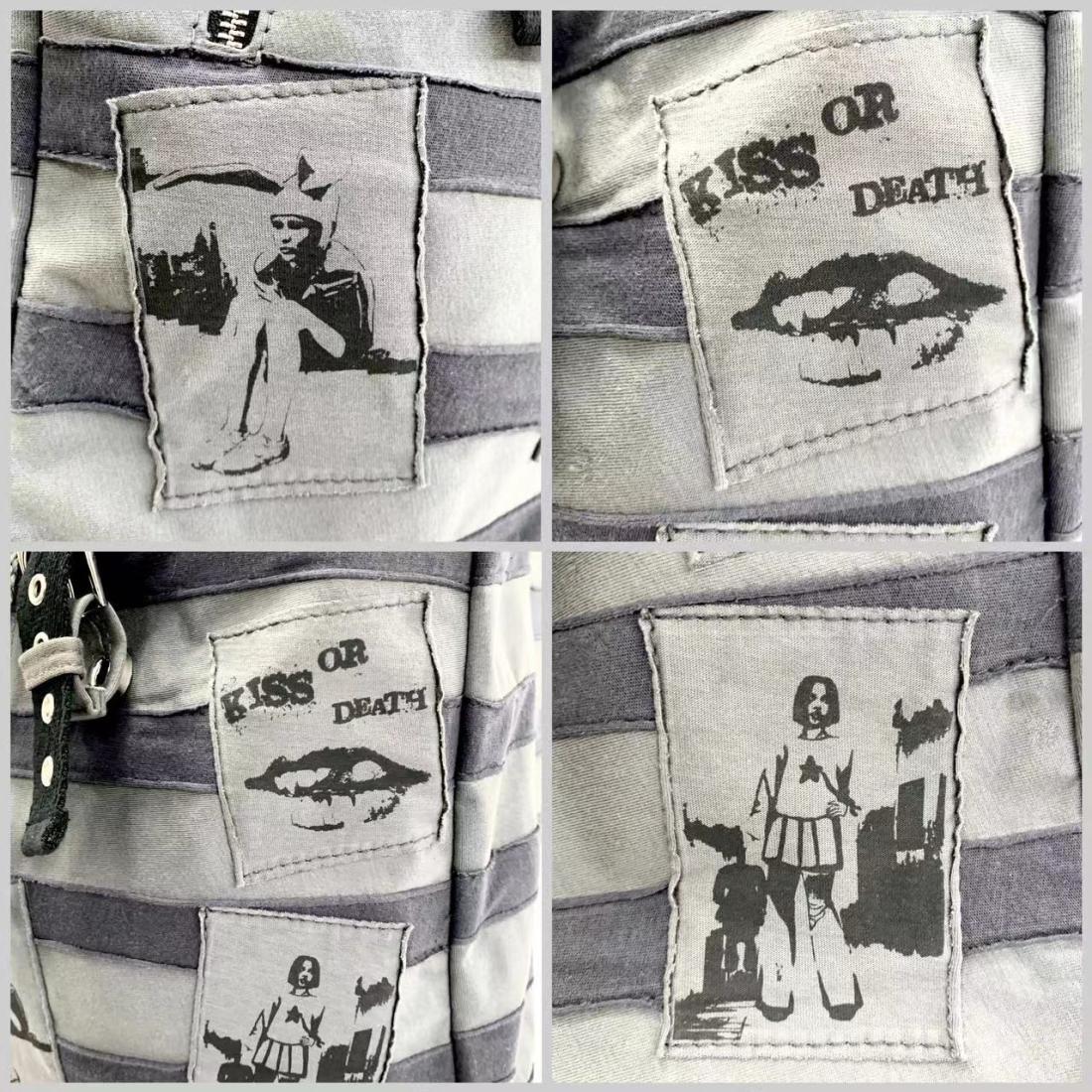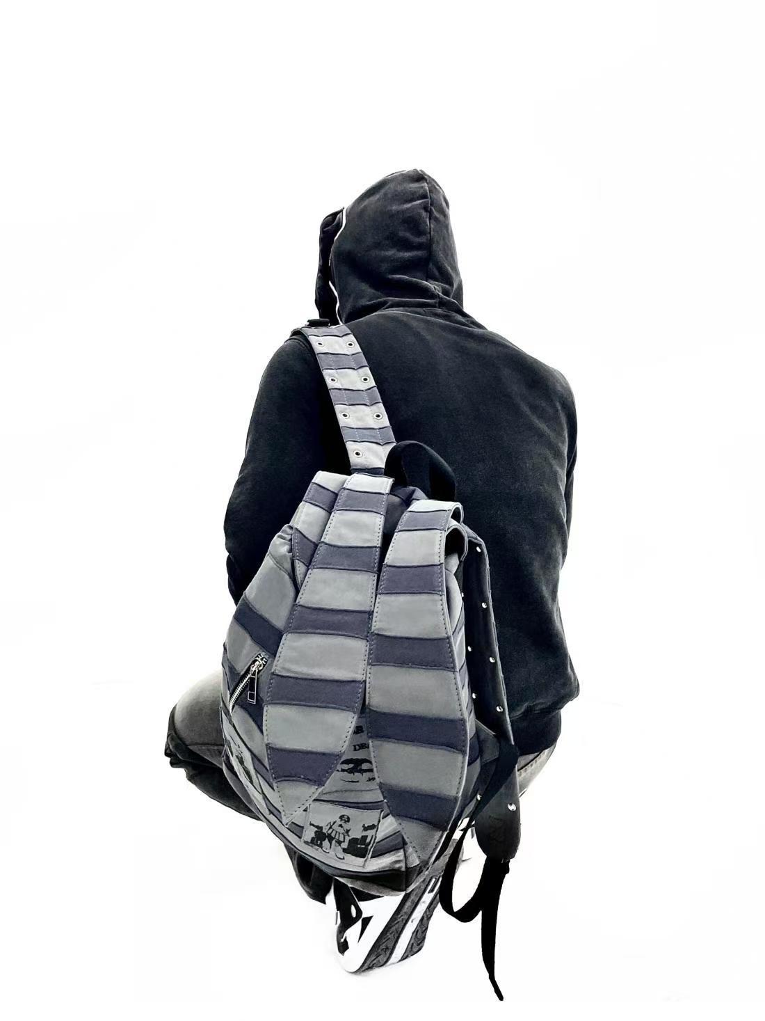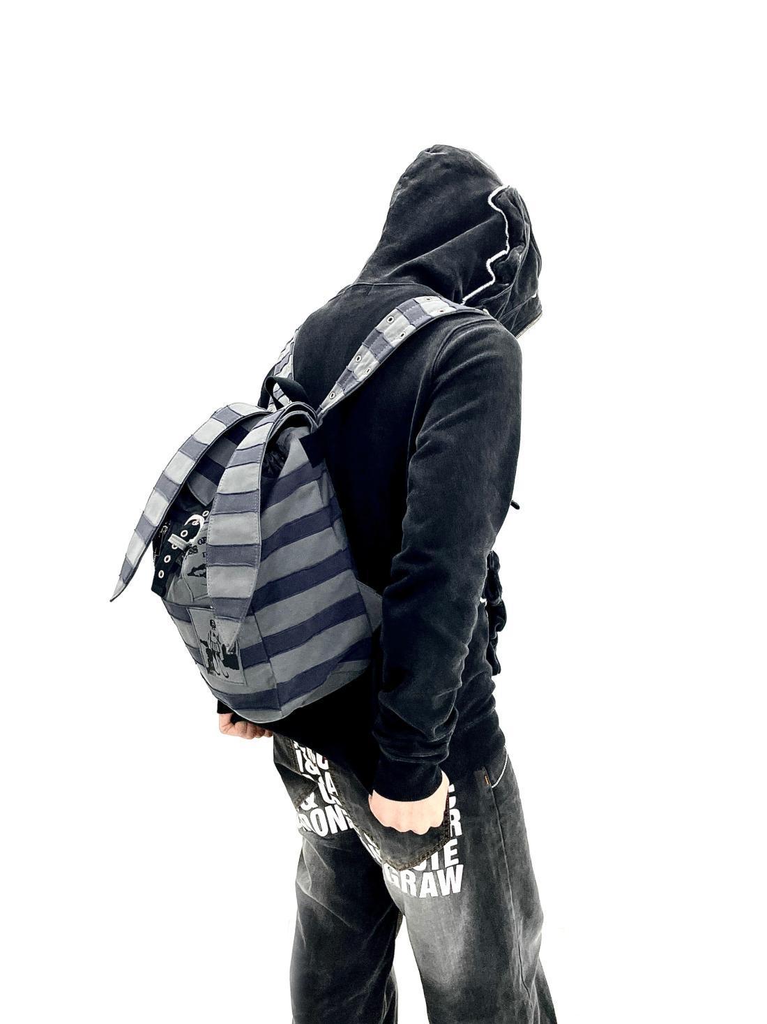 SAUCE 오리지널 신제품 스트라이프 스플라이싱 토끼 귀 배낭 펑크 록 서브컬쳐 패치 프린트 배낭