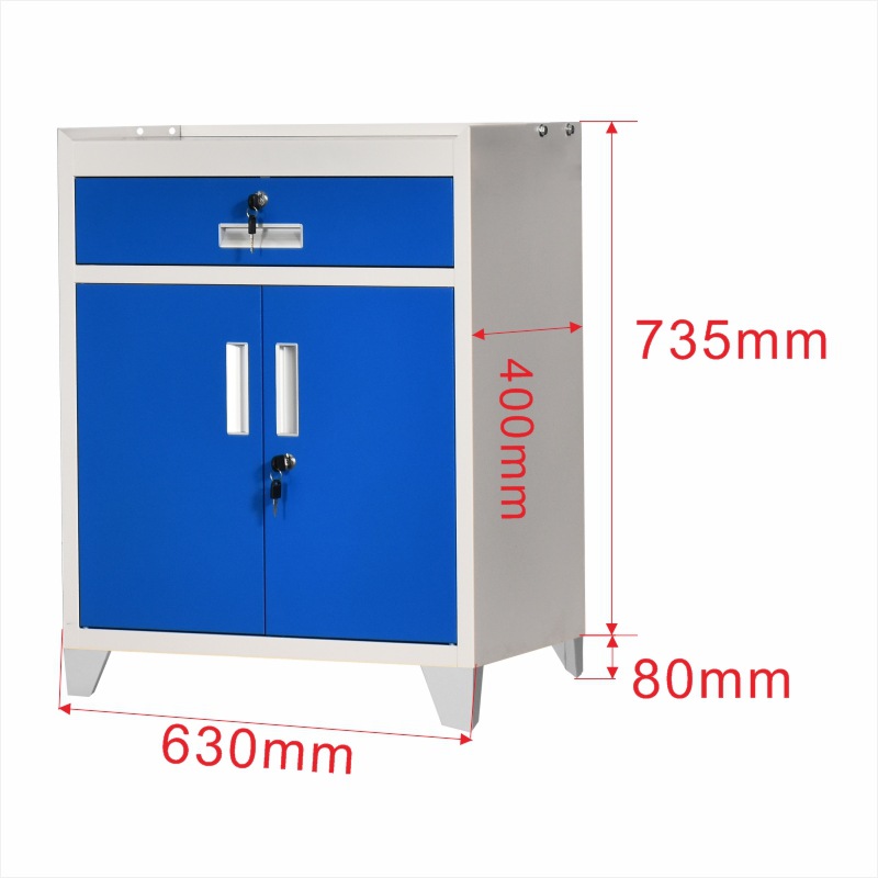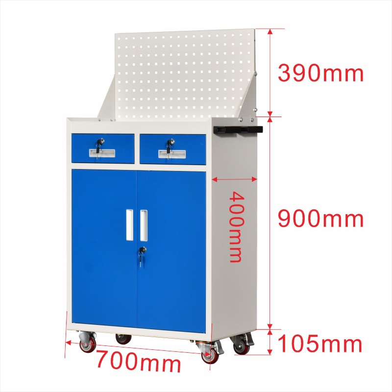 • 플랫 2단 서랍형 단일 캐비닛 + 바퀴 + 후면 패널 파란색