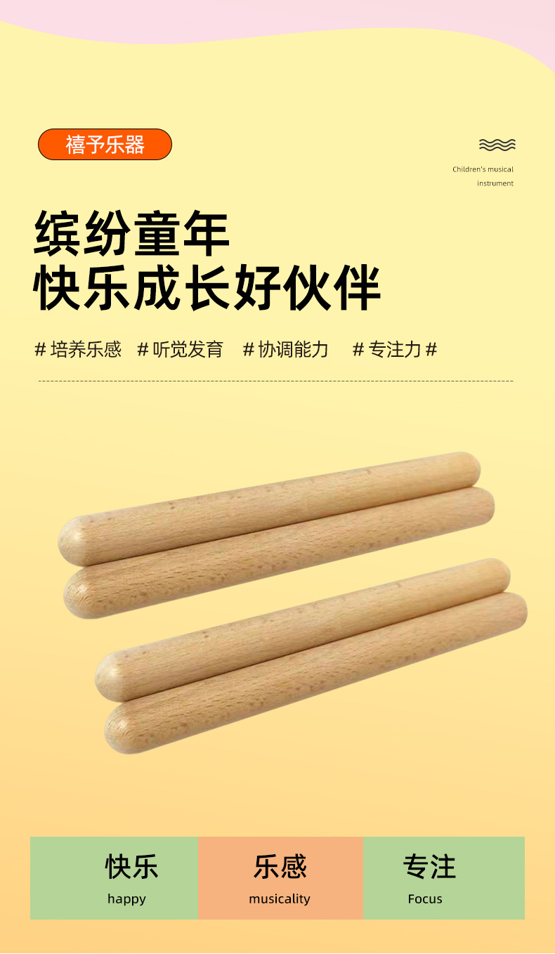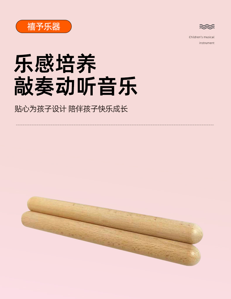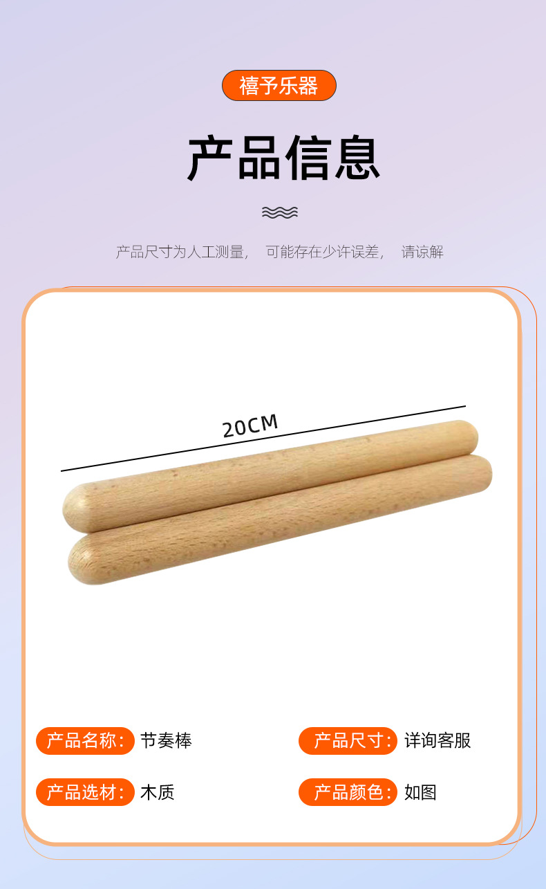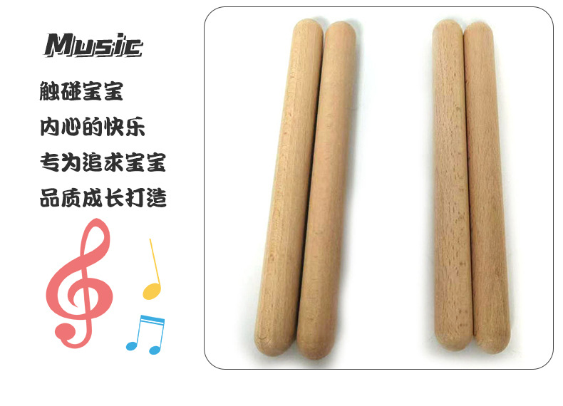 리듬 스틱 오르프 타악기 음악 조기 교육 교육 보조 원목 스틱 양쪽 끝에 둥근 머리가 있는 타악기