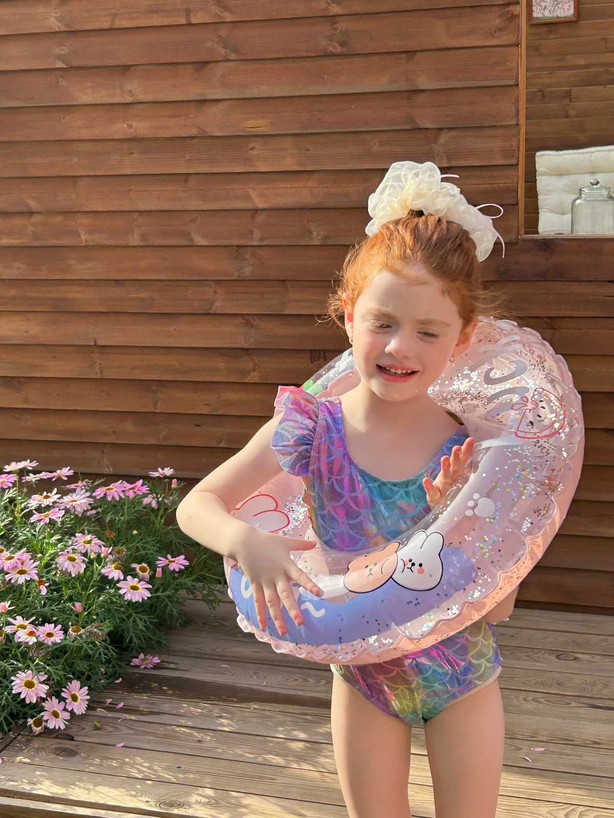 여자 원피스 수영복 한국어 버전 2025 여름 새 아기 귀여운 스팽글 인어 태양 보호 큰 나비 수영복